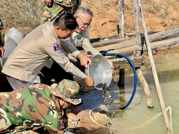 នៅថ្ងៃទី១០ ខែកុម្ភ: ឆ្នាំ២០២៦ បន្ទាប់ពីបញ្ចប់ដំណើរទស្សនកិច្ចសិក្សាផលិតកម្មដំណាំបន្លែវៃឆ្លាតធន់នឹងអាកាសធាតុរបស់គម្រោងកែលម្អសន្តិសុខទឹកកម្ពុជា (CaWSIP) ឯកឧត្តមបណ្ឌិត ហ៊ាន វណ្ណហន រដ្ឋលេខាធិការក្រសួងកសិកម្ម រុក្ខាប្រមាញ់ និងនេសាទ និងជានាយកគម្រោង CaWSIP បានដឹកនាំក្រុមការងារ អមដោយលោកប្រធានមន្ទីរ និងមន្រ្ដីជំនាញនៃមន្ទីរកសិកម្មខេត្ដព្រះវិហារ ជួបសំណះសំណាល និងសួរសុខទុក្ខបងប្អូនវីរកងទ័ព ស្រុកជាំក្សាន្ត ខេត្ដព្រះវិហារ។