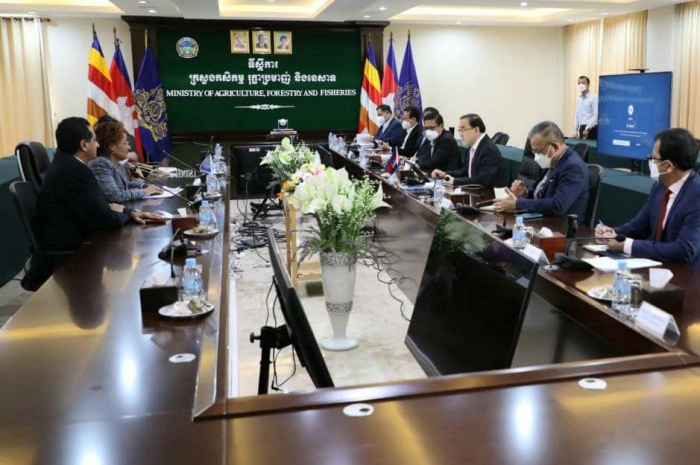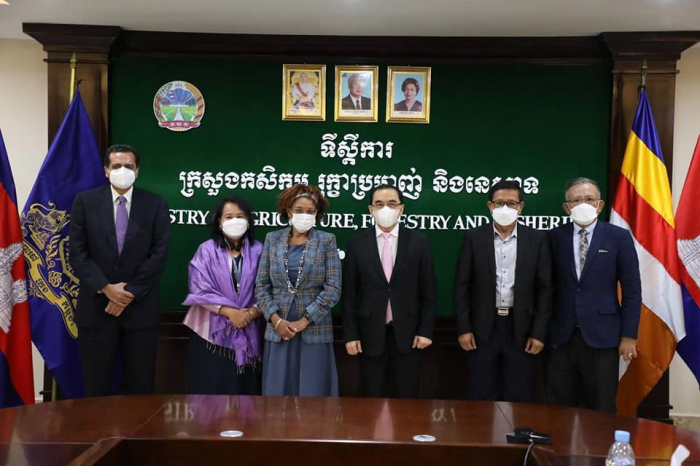 នៅទីស្តីការក្រសួងកសិកម្ម រុក្ខាប្រមាញ់ និងនេសាទ វេលាម៉ោង ១០ព្រឹក ថ្ងៃពុធ ៩កើត ខែ ភទ្របទ ឆ្នាំឆ្លូវ ត្រីស័ក ព.ស. ២៥៦៥ ត្រូវនឹងថ្ងៃទី១៥ ខែកញ្ញា ឆ្នាំ២០២១ ឯកឧត្តមរដ្ឋមន្រ្តី វេង សាខុន បានទទួលជួបលោកជំទាវ Maryam Salim និងសហការីដើម្បីសម្តែងការគួរសមបន្ទាប់ពីលោកជំទាវត្រូវបានតែងតាំងជានាយកគ្រប់គ្រងធនាគារ ពិភពលោកថ្មីប្រចាំនៅព្រះរាជាណាចក្រកម្ពុជា។
