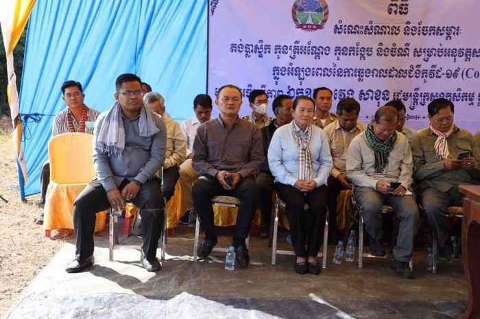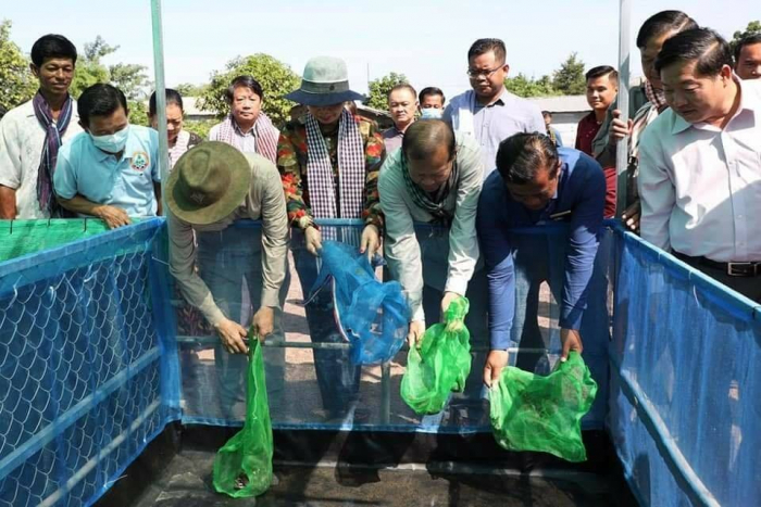ឯកឧត្តមរដ្ឋមន្រ្តីក្នុងនាមឯកឧត្តម លោកជំទាវអភិបាលរងខេត្ត បានពាំនាំនូវការផ្តាំផ្ញើសាកសួរសុខទុក្ខពីសម្តេចតេជោ ហ៊ុន សែន នាយករដ្ឋមន្រ្តី និងសម្តេចកិត្តិព្រឹត្តបណ្ឌិត និងជូនពរបងប្អូនប្រជាពលរដ្ឋគ្រប់ៗក្រុមគ្រួសារឲ្យជួបតែសេចក្តីសុខ សេចក្តីចម្រើន សុភមង្គល និងទទួលបានជោគជ័យក្នុងការងារបង្កបង្កើនផល។ ឯកឧត្តមរដ្ឋមន្រ្តី បានជម្រាបជូនអង្គពិធីជ្រាបថា សម្តេចបានណែនាំឲ្យប្រជាពលរដ្ឋ និងជាពិសេសក្រសួងកសិកម្ម រុក្ខាប្រមាញ់ និងនេសាទ ខិតខំជំរុញចលនាអភិវឌ្ឍវិស័យកសិកម្មឲ្យកាន់តែរីកចម្រើន ក្នុងនោះក៏មានអនុវិស័យវារីវប្បកម្មដែលបាននិងកំពុងដើរតួនាទីយ៉ាងសំខាន់ក្នុងការលើកកំពស់ផលិតភាពផលិតកម្ម ធានាសន្តិសុខស្បៀង ការផ្គត់ផ្គង់ទីផ្សារ ការបង្កើតឱកាសការងារ តាមរយ:ការចិញ្ចឹមត្រី-កង្កែប ជាលក្ខណគ្រួសារក្នុងក្របខណ្ឌបច្ចេកទេសសមស្រប សាម័ញ្ញ ដោយប្រើប្រាស់រយៈពេលខ្លី ចំណាយដើមទុនតិច ទទួលបានផលច្រើន និងជាពិសេសរក្សាបាននូវស្ថានភាពជីវភាពប្រក្រតីតាមគន្លងថ្មីក្នុងអំឡុង ពេលនៃការរីករាលដាលនៃជំងឺឆ្លងកូវីដ-១៩ ស្របតាមអនុសាសន៍ដ៏ខ្ពង់ខ្ពស់របស់សម្តេចតេជោ ហ៊ុន សែន នាយករដ្ឋមន្រ្តីកាលពីថ្ងៃទី១៤ ខែកក្កដាកន្លងមក មិនតែប៉ុណ្ណោះ សម្តេចតេជោក៏បានជួយឧបត្ថម្ភថវិកាចំនួន ២០០០លានរៀលផងដែរ។ ភ្ជាប់ទៅនឹងការឧបត្ថម្ភកូនត្រី-កូនកង្កែបនេះ ឯកឧត្តមរដ្ឋមន្ត្រីបានណែនាំឲ្យមន្ទីរ ក៏ដូចជាមន្រ្តីជំនាញរដ្ឋបាលជលផល និងអាជ្ញាធរមូលដ្ឋានត្រូវខិតខំពុះពារគ្រប់បែបយ៉ាងចុះមកជួយជំរុញការចិញ្ចឹមត្រី និងកង្កែប ដាំបន្លែ ចិញ្ចឹមសត្វ ធ្វើយ៉ាងណាបង្កើនផលិតភាពផលិតកម្មស្បៀង តាមរយ:ការបង្កើនផលិតភាពផលិត ក្លាយវិបត្តិទៅ ជាឱកាសមាសដើម្បីពង្រីក និងពង្រឹងសមត្ថភាពចិញ្ចឹមគ្រួសារតាមគ្រប់រូបភាព។ ត្រូវធ្វើការតាម ដាននូវរាល់សកម្មភាពរបស់វារីវប្បករដែលនឹងយកកូនត្រី និងកូនកង្កែបទៅចិញ្ចឹមនាថ្ងៃនេះ ធ្វើយ៉ាងណាឲ្យអាជីពនេះរីកដុះដាលល្អ និងទទួលបានផលជាបន្តបន្ទាប់។ ព្រមជាមួយគ្នានេះ មន្រ្តីជំនាញរដ្ឋបាលជលផលត្រូវបន្តចុះជួយផ្សព្វផ្សាយបណ្តុះ បណ្តាលបន្ថែមលើការងារបច្ចេកទេសចិញ្ចឹម បង្កាត់ ភ្ញាស់កូន វិធីលាយផ្សំចំណី ការថែទាំ និងប្រសិទ្ធភាពសេដ្ឋកិច្ច ហើយត្រូវបង្កើនសកម្មភាពចុះចែកកូនត្រី កូនកង្កែប និងតង់ចិញ្ចឹម ដល់គ្រួសារដែលចង់ពង្រីកអាជីវកម្មបន្ថែម និងអ្នកដែលចង់ចាប់ផ្តើមចិញ្ចឹម។ ត្រូវចងក្រងបណ្តុះអាជីវកម្មព្រោះវាមានប្រយោជន៍ ក្នុងការ ចូលរួមគ្នាជាកំលាំងចលករផលិត កែច្នៃ ទីផ្សារ ទទួលបានព័ត៌មាន តម្លៃបន្ថែម ទទួលបានបច្ចេកទេស បង្កើតជាសំឡេងតវ៉ាអំពីផលប្រយោជន៍ផ្សេងៗ និងរួមគ្នាដោះស្រាយបញ្ហា។ល។