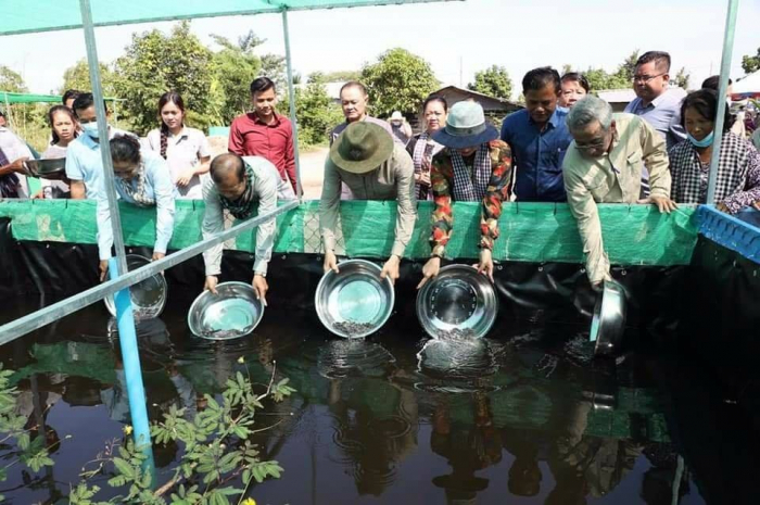 ឯកឧត្តមរដ្ឋមន្ត្រី បានអញ្ជើញនាំយកកូនត្រីអណ្តែង កូនកង្កែប និងសម្ភារចិញ្ចឹមមួយចំនួនទៀតមកចែកជូនកសិករចំនួន ៥៨គ្រួសារ ក្នុងពិធីនេះក៏មានការអញ្ជើញចូលរួមពីឯកឧត្តម ចេង ញ៉ាន់ និងលោកជំទាវ ជា លាប អភិបាលរងនៃគណអភិបាលខេត្ត ដែលពិធីនេះបានរៀបចំនៅផ្ទះលោក ខាន់ បូណា នៅភូមិអូរកន្ធៀងរ៉ា ឃុំស្ទឹងត្រង់ ស្រុកសាលាក្រៅ។ លោក សាយ សុផាត ប្រធាន មន្ទីរកសិកម្ម រុក្ខា ប្រមាញ់ និងនេសាទខេត្ត បានរាយការណ៍ជូនអង្គពិធីជ្រាបដោយសង្ខេបអំពីវិស័យវារីវប្បកម្មនៅទូទាំងខេត្តថា ខេត្តមានបណ្តុំកង្កែបចំនួន ១២កន្លែង (២៧០គ្រួសារ) មាន បណ្តុំត្រី ០៥កន្លែង (៨៦គ្រួសារ) អាចផលិតត្រីបាន ១២តោន/វគ្គ (១វគ្គមាន ៣ខែ) មានកន្លែងបង្កាត់ និងភ្ញាស់កូនកង្កែប ១០កន្លែង (ផលិតបាន ៣ម៉ឺនកូនគិតមកដល់ថ្ងៃនេះ) ដោយឡែក កម្មវិធីផ្សព្វផ្សាយបច្ចេកទេសកសិកម្មថ្មីធន់នឹងការប្រែប្រួលអាកាសធាតុ (ASPIRE) បានផ្តល់លទ្ធភាពដល់កសិករទទួលផល (ចិញ្ចឹមត្រី និងកង្កែប) សរុបចំនួន ៤៦៨គ្រួសារ ក្នុងនោះស្រ្តី ២០២គ្រួសារ ដោយរៀបចំចងក្រងជាក្រុមបណ្តុំអាជីវកម្មត្រី និងកង្កែបចំនួន១៧បណ្តុំ។ ដោយទទួលការបណ្តុះបណ្តាលបច្ចេកទេសពីមន្ត្រីជំនាញមានកសិករចំនួន ៥គ្រួសារ កំពុងដំណើរការចិញ្ចឹមបង្កងជាលក្ខណៈគ្រួសារ ដែលពីមុនៗមកមិនធ្លាប់មានឡើយនៅក្នុងខេត្តប៉ៃលិន។ បន្ទាប់ មក ឯកឧត្តម ចេង ញ៉ាន់ បានមានមតិស្វាគមន៍ និងធ្វើចំណាប់អារម្មណ៍ពាក់ព័ន្ធការងាររដ្ឋបាល ភូមិសាស្រ្ត សន្តិសុខសង្គម ផលិតកម្មកសិកម្ម សកម្មភាពពាណិជ្ជកម្មរវាងប្រទេសទាំងពីរ បញ្ហានាំចេញកសិផល និងជាពិសេសអនុវិស័យវារីវប្បកម្ម។