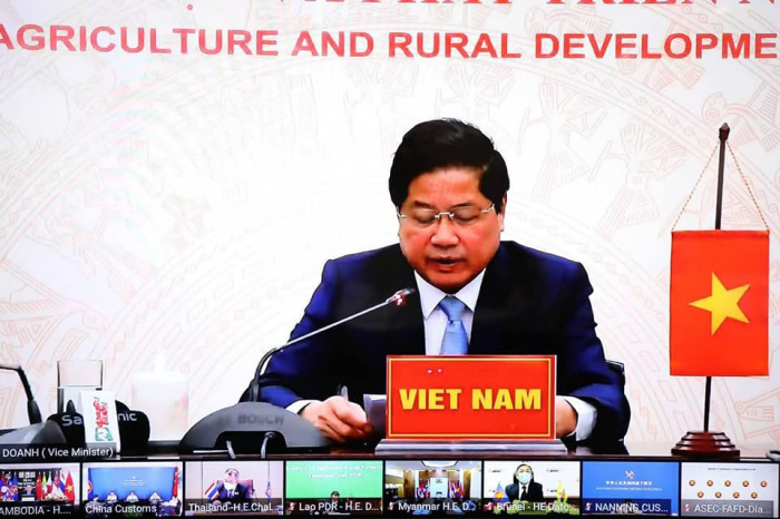 នៅថ្ងៃទី ១៣ ខែកញ្ញា ឆ្នាំ២០២១, ឯកឧត្តម វេង សាខុន រដ្ឋមន្ត្រីក្រសួងកសិកម្ម រុក្ខាប្រមាញ់ និងនេសាទ, ប្រធានប្តូរវេនរដ្ឋមន្រ្តីកសិកម្មនិងព្រៃឈើអាស៊ាន បានធ្វើជា សហប្រធានជាមួយ ឯកឧត្តម Wang Lingjun    អនុរដ្ឋមន្ត្រីអគ្គរដ្ឋបាលគយ (GACC)នៃសាធារណៈរដ្ឋប្រជាមានិតចិន ដើម្បីដឹកនាំកិច្ចប្រជុំថ្នាក់រដ្ឋមន្រ្តីអាស៊ាន-ចិន លើកទី៧ ស្តីពីកិច្ចសហប្រតិបត្តិការលើផ្នែកអនាម័យ និងភូតគាមអនាម័យ (SPS)។ ក្នុងកិច្ចប្រជុំនេះ ឯកឧត្តមរដ្ឋមន្ត្រី វេង សាខុន បានជម្រាបជូនអង្គប្រជុំពីលទ្ធផលនៃជំនួបពិភាក្សារវាងសម្តេចអគ្គមហាសេនាបតីតេជោ ហ៊ុន សែន នាយករដ្ឋមន្ត្រីនៃព្រះរាជាណាចក្រកម្ពុជា និងឯកឧត្តម វ៉ាង យី ទីប្រឹក្សារដ្ឋ និងជារដ្ឋមន្ត្រីការបរទេសនៃសាធារណរដ្ឋប្រជាមានិតចិន ដែលបានឯកភាពគ្នាក្នុងការជំរុញពាណិជ្ជកម្មនៃប្រទេសទាំងពីរជាពិសេសការធ្វពាណិជ្ជកម្មក្នុងវិស័យអោយកាន់តែជឿនលឿនមួយកម្រឹតថែមទៀត។ ឯកឧត្តមរដ្ឋមន្ត្រី ក៏បានស្នើសុំឯកឧត្តម Wang Lingjun   អនុរដ្ឋមន្ត្រីអគ្គរដ្ឋបាលគយ (GACC)នៃសាធារណៈរដ្ឋប្រជាមានិតចិន ជួយពង្រីក និងពន្លឿនលើការចុះពិធីសារលើមុខដំណាំផ្សេងៗទៀត ដើម្បីជំរុញការនាំចេញកសិកផលកម្ពុជាទៅកាន់ប្រទេសចិនអោយកាន់តែច្រើន ដើម្បីឆ្លើយតប ទៅតាមការប្តេជ្ញាចិត្តរបស់ថ្នាក់ដឹកនាំនៃប្រទេសទាំង២។