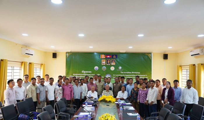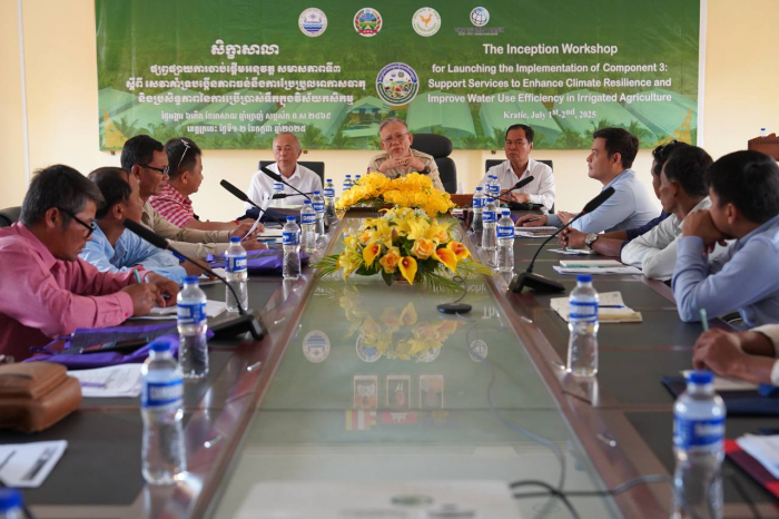 នៅថ្ងៃទី១ ខែកក្កដា ឆ្នាំ២០២៥ ឯកឧត្តម ហ៊ាន វណ្ណហន រដ្ឋលេខាធិការក្រសួងកសិកម្ម រុក្ខាប្រមាញ់ និងនេសាទ និងជានាយកគម្រោង CaWSIP_MAFF បានអញ្ជើញជាគណៈអធិបតីបើកសិក្ខាសាលាផ្សព្វផ្សាយការចាប់ផ្ដើមអនុវត្ដសមាសភាគទី៣ ស្ដីពី សេវាគាំទ្របង្កើនភាពធន់នឹងការប្រែប្រួលអាកាសធាតុ និងប្រសិទ្ធភាពនៃការប្រើប្រាស់ទឹកក្នុងវិស័យកសិកម្ម នៃគម្រោងកែលម្អសន្តិសុខទឹកកម្ពុជា (CaWSIP) នៅមន្ទីរកសិកម្ម រុក្ខាប្រមាញ់ និងនេសាទ ខេត្តក្រចេះ។