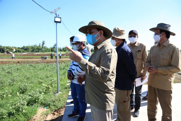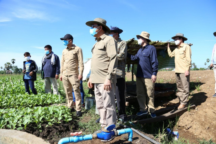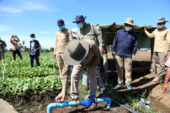 ឯកឧត្តមរដ្ឋមន្រ្តី វេង សាខុន បានអញ្ជើញមកពិនិត្យនិងវាយតម្លៃលើវឌ្ឍនភាពនៃគម្រោងសាងសង់ប្រព័ន្ធស្រោចស្រពបន្លែ នៅភូមិត្រពាំងក្រសែកើត ឃុំគោគគង់លិច ស្រុកកញ្ជ្រៀច ខេត្តព្រៃវែង