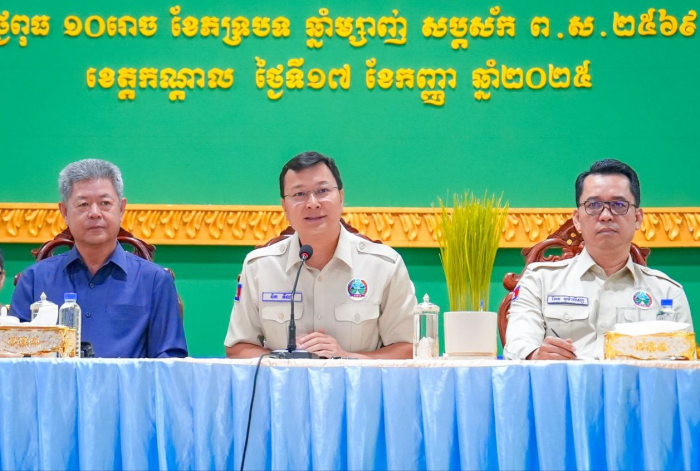 នាព្រឹកថ្ងៃទី១៧ ខែកញ្ញា ឆ្នាំ២០២៥ ឯកឧត្តម ឌិត ទីណា រដ្ឋមន្ត្រីក្រសួងកសិកម្ម រុក្ខាប្រមាញ់ និងនេសាទ ឯកឧត្តមរដ្ឋលេខាធិការ កែវ អូម៉ាលីស្ស និងឯកឧត្តម គួច ចំរើន អភិបាល នៃគណៈអភិបាលខេត្តកណ្តាល បានអញ្ជើញជាអធិបតីភាពក្នុងពិធីជួបសំណេះសំណាលជាមួយមន្ត្រីកសិកម្មឃុំ-សង្កាត់ នៅសាលាខេត្តកណ្តាល។