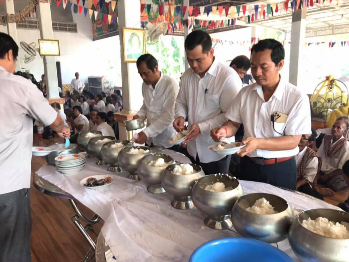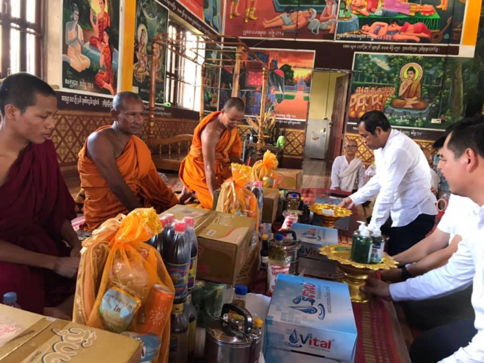 បន្ទាប់ពីបានវេរចង្ហាន់ និងទេយ្យទានជូនព្រះសង្ឃរួច ក្រុមការងារក៏បាននាំយកនូវគ្រឿងឧបភោគ និងសម្ភារមួយចំនួន និងបច្ច័យ១ម៉ឺនរៀលក្នុង១នាក់ ចំនួន៥៤នាក់ របស់ឯកឧត្តម វេង សាខុន រដ្ឋមន្រ្តីក្រសួងកសិកម្ម រុក្ខាប្រមាញ់ និងនេសាទ និងជាប្រធានក្រុមការងាររាជរដ្ឋាភិបាលចុះមូលដ្ឋានស្រុកតំបែរ ខេត្តត្បូងឃ្មុំ ជូនចំពោះយាយជី តាជីដែលរស់នៅក្នុងឃុំសេដាផងដែរ។