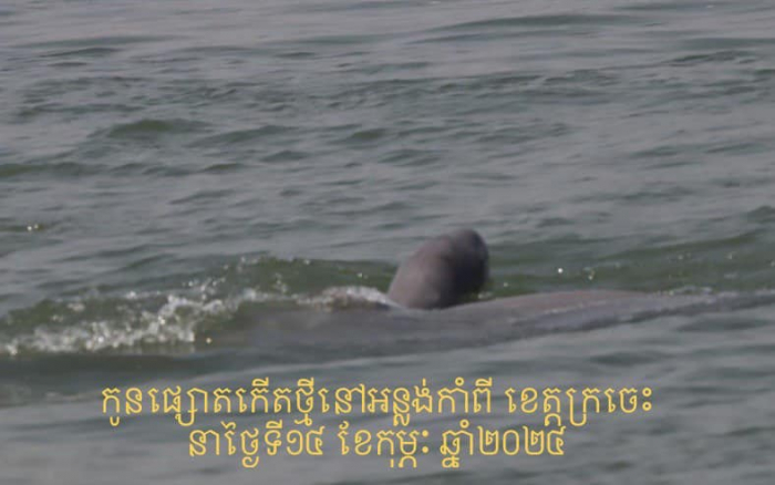 កូនសត្វផ្សោតទើបកើតថ្មីមួយក្បាល ត្រូវបានប្រទះឃើញដោយក្រុមការងារស្រាវជ្រាវនៃរដ្ឋបាលជលផល និងអង្គការ WWF នៅវេលាម៉ោង ១០:១៨នាទី នាថ្ងៃទី១៤ ខែកុម្ភៈ ឆ្នាំ២០២៤នេះ នៅអន្លង់កាំពី ស្ថិតនៅភូមិសំបុក ឃុំសំបុក ស្រុកចិត្របុរី ខេត្តក្រចេះ។
