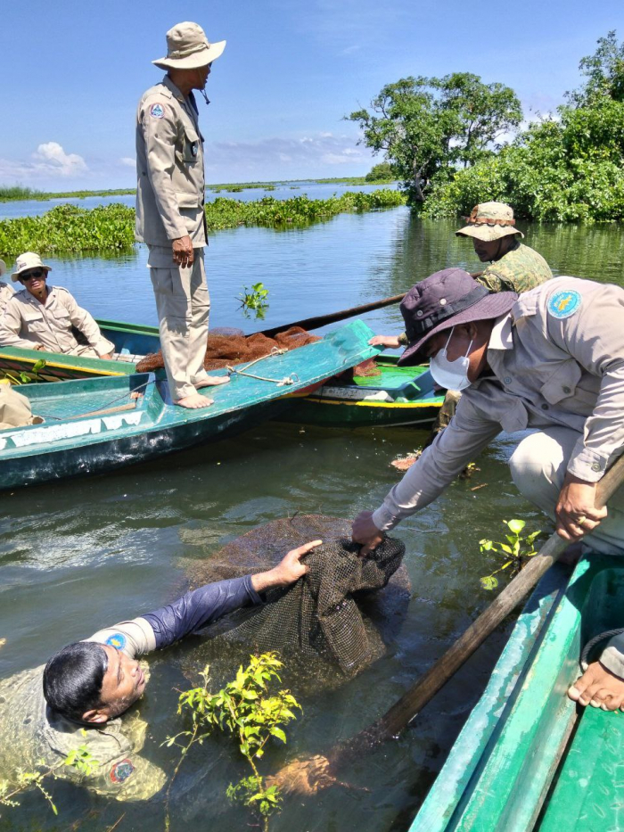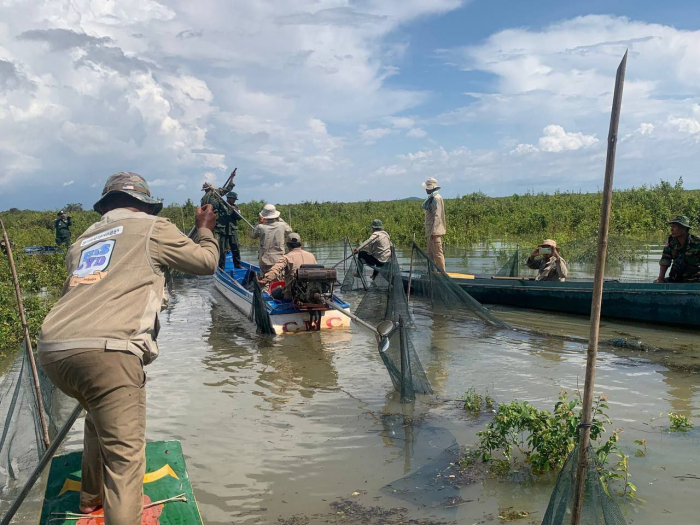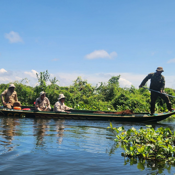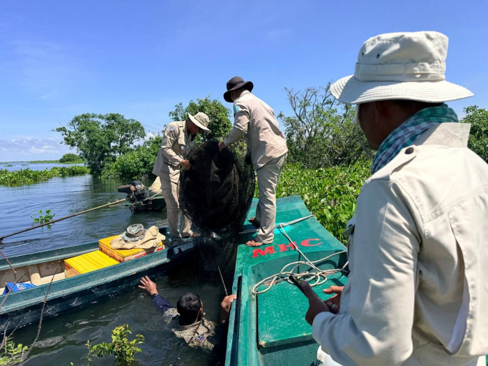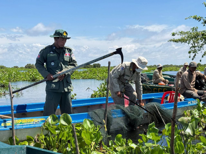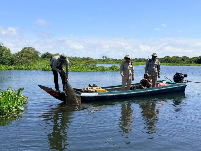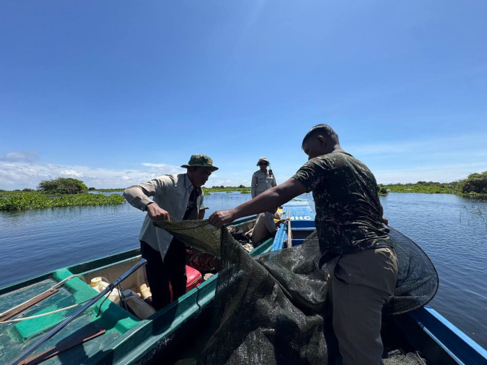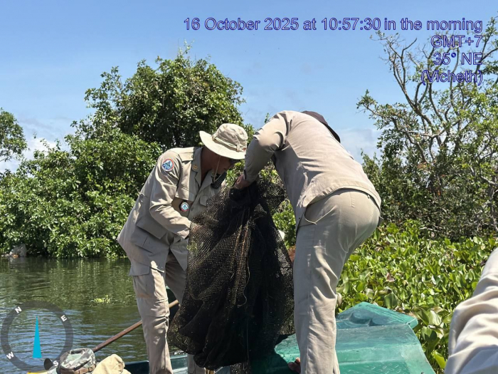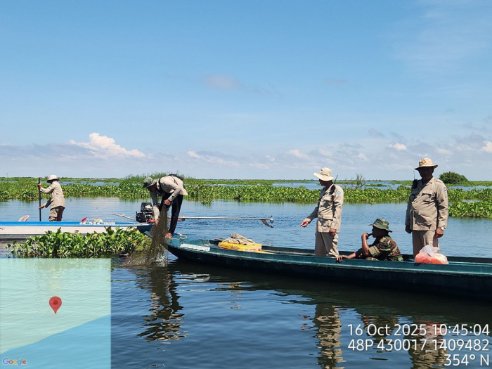 ថ្ងៃទី១៦ ខែតុលា ឆ្នាំ២០២៥ ឯកឧត្តម ប៉ែន ផល្លីកា អនុរដ្ឋលេខាធិការក្រសួងកសិកម្ម រុក្ខាប្រមាញ់ និងនេសាទ បានអញ្ជើញដឹកនាំក្រុមការងារជំនាញ រួមមាន លោក ប៉ី វិចិត្រ នាយរងអធិការដ្ឋានរដ្ឋបាលជលផលខាងជើងបឹងទន្លេសាប លោក ជិន ស៊ីថា នាយខណ្ឌរដ្ឋបាលជលផលកំពង់ធំ និងសហការី, លោកនាយសង្កាត់រដ្ឋបាលជលផលពាមបាង និងសហការី លោកនាយសង្កាត់រដ្ឋបាលជលផលស្ទោង និងសហការី ព្រមទាំងកម្លាំងចម្រុះទីបញ្ជាការស្រាលប្រចាំការឃុំពាមបាង ស្រុកស្ទោង ចេញប្រតិបត្តិការត្រួតពិនិត្យ ទប់ស្កាត់ និងបង្រ្កាបបទល្មើសធនធានជលផលនៅចំណុចបាឡត រហូតដល់បាទាល់ ឃុំពាមបាង ស្រុកស្ទោង ខេត្តកំពង់ធំ។