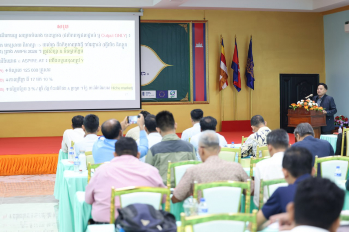 នៅថ្ងៃទី១៦ ខែកញ្ញា ឆ្នាំ២០២៥ ឯកឧត្តមបណ្ឌិត មាស ពិសិដ្ឋ រដ្ឋលេខាធិការក្រសួងកសិកម្ម រុក្ខាប្រមាញ់ និងនេសាទ និងជានាយកកម្មវិធី ASPIRE-AT បានអញ្ជើញដឹកនាំសិក្ខាសាលាស្តីពី «ការរៀបចំផែនការសកម្មភាព និងថវិកា ឆ្នាំ២០២៦ របស់កម្មវិធីគាំទ្រសេដ្ឋកិច្ចជនបទ និងពាណិជ្ជកម្មផលិតផលកសិកម្ម (ASPIRE-AT) និងគម្រោងការបង្កើនភាពធន់នឹងអាកាសធាតុក្នុងខ្សែច្រវាក់តម្លៃកសិកម្មនៅកម្ពុជា (CERA)» នៅមន្ទីរកសិកម្ម រុក្ខាប្រមាញ់ និងនេសាទ ខេត្តកំពត។