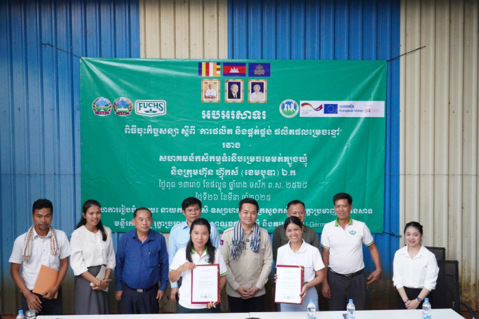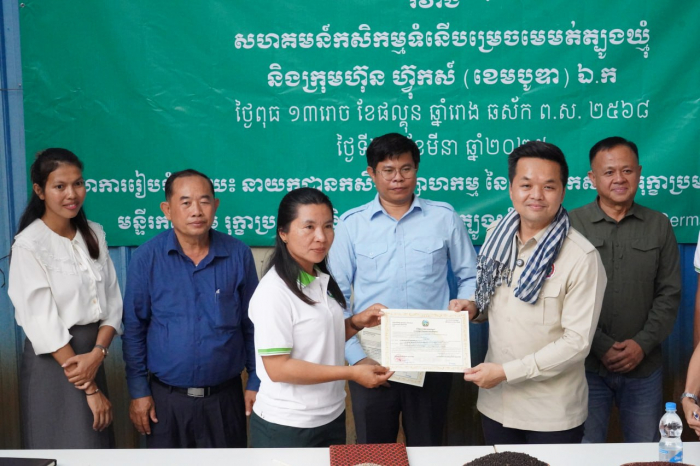 នៅថ្ងៃទី២៦ ខែមីនា ឆ្នាំ២០២៥ ឯកឧត្តម ឃឹម ហ្វីណង់ អនុរដ្ឋលេខា ធិការ ក្រសួង កសិកម្ម រុក្ខាប្រមាញ់ និងនេសាទ រួមជាមួយនាយកដ្ឋាន កសិ- ឧស្សាហកម្ម នាយកដ្ឋានអភិវឌ្ឍន៍សហគមន៍កសិកម្ម និងមន្ទីរកសិកម្ម រុក្ខាប្រមាញ់ និងនេសាទ ខេត្តត្បូងឃ្មុំ បានអញ្ជើញជាសក្ខីភាព ក្នុងពិធី ចុះហត្ថលេខា លើកិច្ច សន្យា ស្តីពី «ការផលិត និងផ្គត់ផ្គង់ ម្រេចស្ងួត» រវាងសហគមន៍កសិកម្ម ទំនើបម្រេចមេម៉ត់ត្បូងឃ្មុំ ជាមួយ នឹង ក្រុមហ៊ុន ហ៊្វុកស៍ (ខេមបូឌា) ឯ.ក នៅក្នុង ខេត្តត្បូងឃ្មុំ។