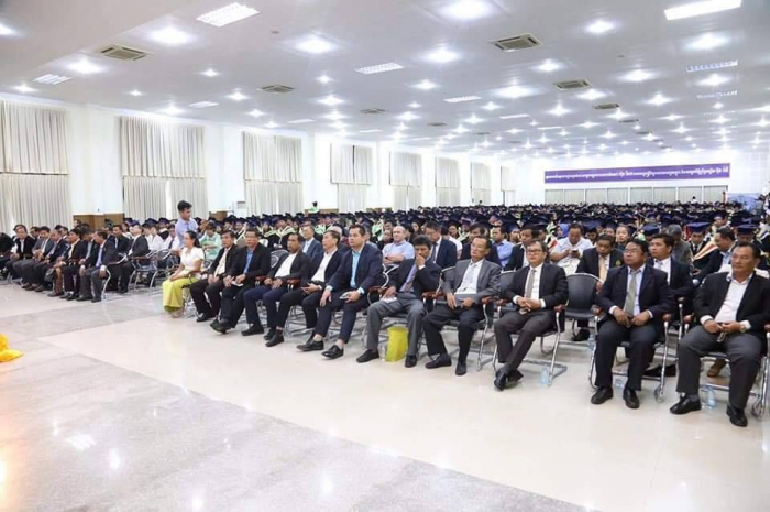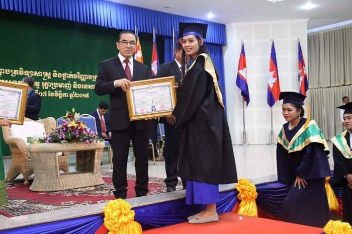 ឆ្លៀតក្នុងឱកាសនេះ ឯកឧត្តមរដ្ឋមន្រ្តីបានចូលរួមអបអរសាទរដោយស្មោះចំពោះក្មួយៗនិស្សិតជ័យលាភីទាំង ១ ០៥៦នាក់ ដែលនឹងត្រូវទទួលសញ្ញាបត្រនាពេលបន្តិចទៀតនេះ។ លទ្ធផលនេះ គឺជាសក្ខីភាពនៃការខិតខំប្រឹងប្រែង រៀនសូត្ររបស់ក្មួយៗនិស្សិតទាំងអស់ ដែលបានព្យាយាមតស៊ូ ទ្រាំទ្ររាល់ការលំបាកគ្រប់បែបយ៉ាងអស់រយៈពេលជាច្រើនឆ្នាំកន្លងមក ហើយផ្លែផ្កានេះ គឺជាស្ពាននៃការចម្លងខ្សែជីវិតរបស់ក្មួយៗ ដើម្បីមានលទ្ធភាពបន្តវិជ្ជាជីវៈ និងកសាងអនាគតភ្លឺស្វាងរបស់ក្មួយៗ នាពេលខាងមុខជាបន្តទៀតប្រកបដោយកិត្តិយស និងសេចក្តីថ្លៃថ្នូរ។ជោគជ័យនេះ មិនត្រឹមតែមានអត្ថន័យជ្រាលជ្រៅសម្រាប់ក្មួយៗនិស្សិតជាជ័យលាភីផ្ទាល់ ក៏ដូចជាក្រុមគ្រួសារ និងសង្គមជាតិទាំងមូលប៉ុណ្ណោះទេ ក៏ប៉ុន្តែវាជាការចូលរួមដោយប្រាកដជាមួយនឹងសមិទ្ធផលជាច្រើនទៀត ដែលរាជរដ្ឋាភិបាលនិងប្រជាជនកម្ពុជាទូទាំងប្រទេសសម្រេចបានប្រកបដោយមោទនភាព។ ទាំងនេះពិតជាបានឆ្លុះបញ្ចាំងយ៉ាងច្បាស់ថា កម្ពុជាយើងបាននិងកំពុងយកចិត្តទុកដាក់ពង្រឹង និងពង្រីកនូវសក្តានុពលធនធានមនុស្សប្រកបដោយសមត្ថភាពខ្ពស់ សម្រាប់ការអភិវឌ្ឍសង្គមសេដ្ឋកិច្ចជាតិ និងរួមចំណែកកាត់បន្ថយភាពក្រីក្ររបស់ប្រជាជនយ៉ាងពិតប្រាកដ។