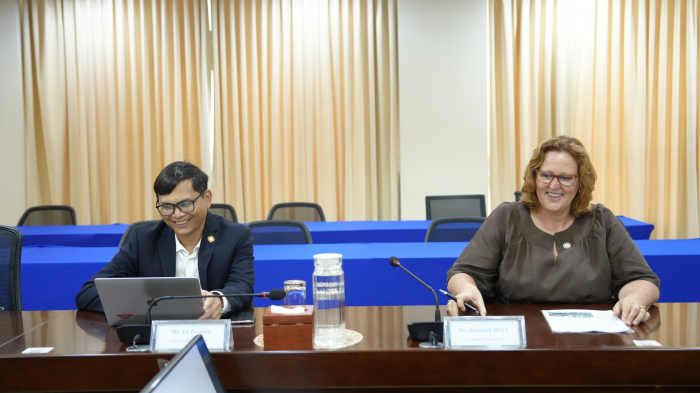 នារសៀលថ្ងៃទី០៤ ខែកញ្ញា ឆ្នាំ២០២៤ ឯកឧត្តម ឌិត ទីណា រដ្ឋមន្ត្រីក្រសួងកសិកម្ម រុក្ខាប្រមាញ់ និងនេសាទ និងថ្នាក់ដឹកនាំ បានទទួលជួបពិភាក្សាការងារអំពីជីវម៉ាស (Biomass) ជាមួយលោកស្រី Rebekah Bell នាយកអង្គការស្បៀង និងកសិកម្មនៃសហប្រជាជាតិប្រចាំប្រទេសកម្ពុជា នៅទីស្តីការក្រសួងកសិកម្ម រុក្ខាប្រមាញ់ និងនេសាទ។