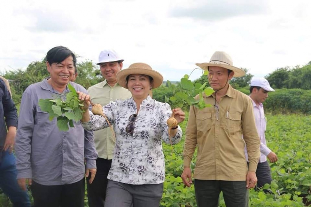 មានប្រសាសន៍ទៅកាន់បងប្អូនកសិករជាម្ចាស់ចំការក្នុងទឹកចិត្តសប្បាយរីករាយដោយបានឃើញផលដំណាំបានល្អ ប្រសើរ ហើយលោកបានធ្វើការ កោតសរសើរចំពោះការខិតខំប្រឹងប្រែងរបស់បងប្អូនដែលប្រកាន់យកអាជីពដាំបន្លែជារបរស្នូលដើម្បីជីវភាពសម្បូរសប្បាយ និងជាពិសេសបានយល់ដឹងពីការងារបច្ចេកទេសកសិកម្ម និងបានយកមកអនុវត្តបានយ៉ាងល្អប្រសើរបើទោះបីនៅមានចំណុចខ្វះខាត ខ្លះៗដែលត្រូវរៀនសូត្របន្ថែមទៀត តាមរយៈមន្រ្តីជំនាញ កសិកម្ម។ តាមការបញ្ជាក់របស់បងប្អូនកសិករបានឲ្យដឹងថា ក្នុងមួយឆ្នាំពួកគាត់អាចទទួលបានប្រាក់ចំណូលពីការដាំដុះនេះ ពីសាមសិប ទៅជាងហាសិបម៉ឺនរៀលក្នុងមួយឆ្នាំ ។ ទន្ទឹមនឹងនេះ ឯកឧត្តមរដ្ឋមន្ត្រីបានស្នើឲ្យអគ្គនាយកដ្ឋាន សហការជាមួយមន្ទីរត្រូវចុះមកជួយរៀបចំចងក្រជាសហគមន៍បន្លែសុវត្ថិភាព និងជួយបណ្តុះបណ្តាល បន្ថែមលើការងារបច្ចេកទេសដែលនៅមានខ្វះចន្លោះ និងការអនុវត្តកសិកម្មតាមកិច្ចសន្យាដើម្បីងាយស្រួលរកទីផ្សារ និងបង្កើនតម្លៃបន្ថែម។