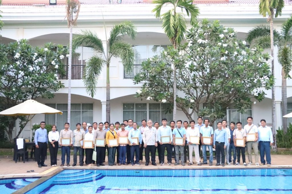 នៅរសៀលថ្ងៃទី១ ខែមេសា ឆ្នាំ២០២៦ ឯកឧត្តមបណ្ឌិត ហ៊ាន វណ្ណហន រដ្ឋលេខាធិការក្រសួងកសិកម្ម រុក្ខាប្រមាញ់ និងនេសាទ និងជានាយកគម្រោងកែលម្អសន្តិសុខទឹក (CaWSIP-MAFF) បានអញ្ជើញជាអធិបតីភាពក្នុងពិធីបិទវគ្គបណ្តុះបណ្តាលគ្រូបង្គោល ស្តីពីផលិតកម្មដំណាំស្វាយចន្ទីដែលធន់នឹងអាកាសធាតុ នៅទីរួមខេត្តកំពង់ធំ ក្រោមក្របខ័ណ្ឌគម្រោងកែលម្អសន្តិសុខទឹកកម្ពុជា (CaWSIP-MAFF)។