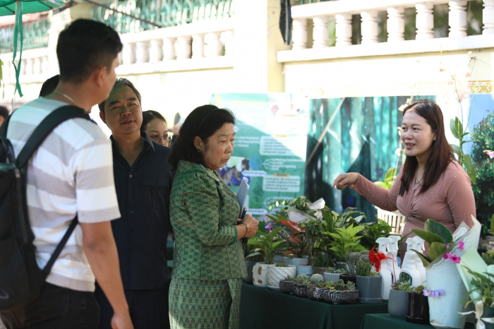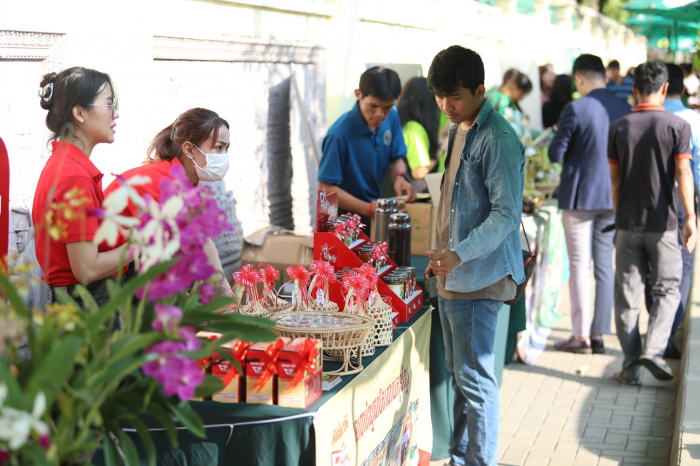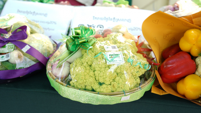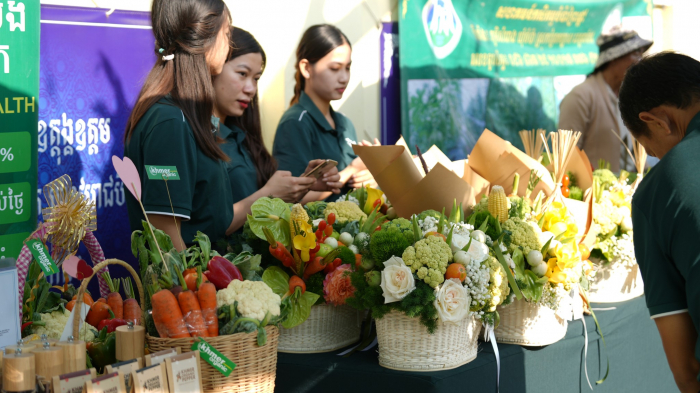 ទិដ្ឋភាពនៃការតាំងលក់ផលិតផលកសិកម្ម និងបន្លែសុវត្ថិភាព នាឱកាសទិវានៃសេចក្តីស្រឡាញ់ ១៤ កុម្ភៈ ២០២៤