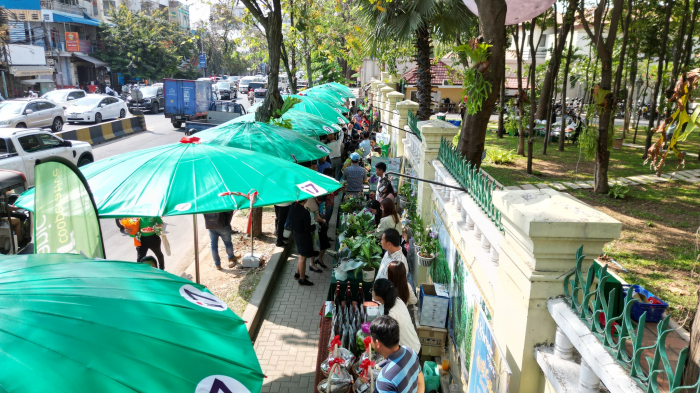 ទិដ្ឋភាពនៃការតាំងលក់ផលិតផលកសិកម្ម និងបន្លែសុវត្ថិភាព នៅមុខទីស្តីការ ក្រសួងកសិកម្ម រុក្ខាប្រមាញ់ និងនេសាទ នាឱកាសទិវានៃសេចក្តីស្រឡាញ់ ១៤ កុម្ភៈ ២០២៤