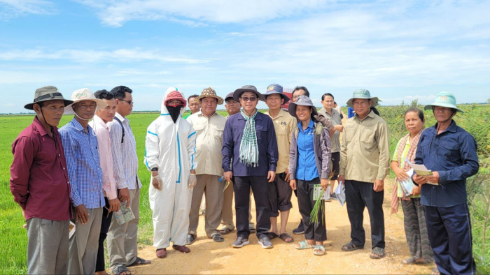 ឯកឧត្តម តូច ប៊ុនហួរ រដ្ឋលេខាធិការក្រសួងកសិកម្ម រុក្ខាប្រមាញ់ និងនេសាទ អញ្ជើញដឹកនាំមន្ត្រីជំនាញចុះវាយតម្លៃលទ្ធផលនៃការអន្តរាគមន៍លើការកម្ចាត់ដង្កូវហ្វូង និងរុយសរ លើដំណាំស្រូវប្រជាកសិករ នៅក្នុងខេត្តតាកែវ