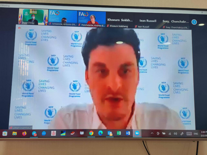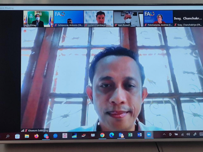 ឯកឧត្តមបណ្ឌិត ងិន ឆាយ ប្រតិភូរាជរដ្ឋាភិបាលកម្ពុជាទទួលបន្ទុកជាអគ្គនាយកនៃអគ្គនាយកដ្ឋានកសិកម្មចប្រជុំតាមរយៈប្រព័ន្ធអនឡាញជាមួយលោក Antonio Schiavone តំណាងអង្គការស្បៀងនិងកសិកម្មនៃសហប្រជាជាតិ (FAO) និងក្រុមការងារ និង Mr. Yohan Chambaud តំណាងកម្មវិធីស្បៀងអាហារពិភពលោក (WFP)