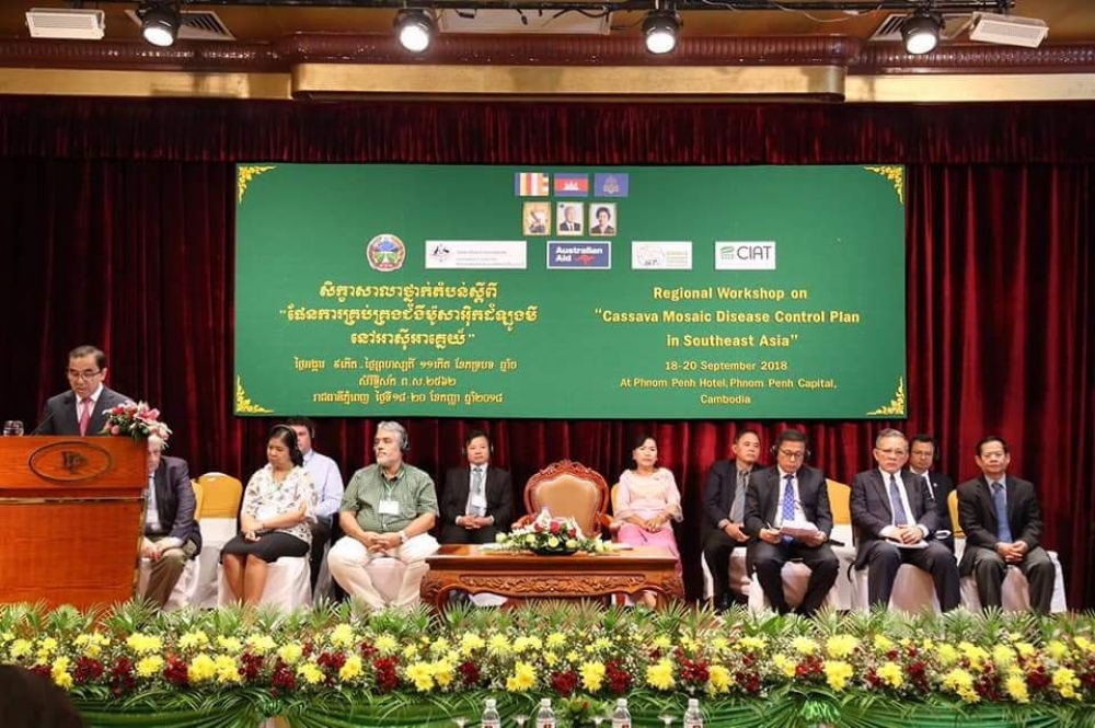 នៅសណ្ឋាគារភ្នំពេញ នាព្រឹកថ្ងៃអង្គារ ៩កើត ខែភទ្របទ សំរឹទ្ធិស័ក ព.ស២៥៦២ ត្រូវនឹងថ្ងៃទី១៨ ខែកញ្ញា ឆ្នាំ២០១៨ ឯកឧត្តមវេង សាខុន រដ្ឋមន្រ្តីក្រសួងកសិកម្ម រុក្ខាប្រមាញ់ និងនេសាទ បានអញ្ជើញជាអធិបតីក្នុងពិធីបើកសិក្ខាសាលាថ្នាក់តំបន់ស្តីពីផែនការគ្រប់គ្រងជំងឺម៉ូសាអ៊ិកដំឡូងមីនៅអាស៊ីអាគ្នេយ៍ ដែលត្រូវបានសហការរៀបចំដោយមជ្ឈមណ្ឌលអន្តរជាតិសម្រាប់កសិកម្មតំបន់ត្រូពិក និងភាពជាដៃគូដំណាំដំឡូងមីសកលសម្រាប់សតវត្សទី២១ ជាមួយអគ្គនាយកដ្ឋានកសិកម្ម ដោយមានការចូលរួមពីអ្នកជំនាញថ្នាក់ជាតិ អន្តរជាតិ និងដៃគូអភិវឌ្ឍន៍ជាច្រើនដូចជាអង្គការ DFAT, ACIAR, FAO, IFAD, JICA, EU, UNDP, IFC, និង GIZ។