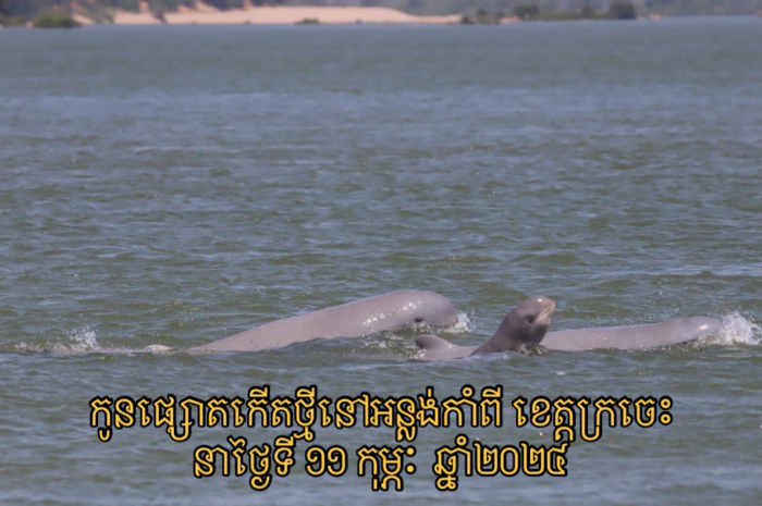 កូនសត្វផ្សោតទើបកើតថ្មីមួយក្បាល មានអាយុប្រមាណជា២ថ្ងៃ ត្រូវបានប្រទះឃើញដោយក្រុមឆ្មាំទន្លេ ក្រុមការងារស្រាវជ្រាវនៃរដ្ឋបាលជលផល និងអង្គការ WWF នៅវេលាម៉ោងប្រមាណ ១០ និង៤៥នាទី នាថ្ងៃទី១១ ខែកុម្ភៈ ឆ្នាំ២០២៤ នៅអន្លង់កាំពី ជ្រោយបន្ទាយ ភូមិសំបុក ឃុំសំបុក ស្រុកចិត្របុរី ខេត្តក្រចេះ។