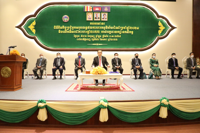 នៅទីស្តីការក្រសួងកសិកម្ម រុក្ខាប្រមាញ់ និងនេសាទ នាព្រឹកថ្ងៃពុធ ៩រោច ខែបុស្ស ឆ្នាំឆ្លូវ ត្រីស័ក ព.ស ២៥៦៥ ត្រូវនឹងថ្ងៃទី២៦ ខែមករា ឆ្នាំ២០២២ អគ្គនាយកដ្ឋានកសិកម្មបានរៀបចំពិធីបិទកិច្ចប្រជុំបូកសរុបលទ្ធផលការងារឆ្នាំ២០២១ និងលើកទិសដៅអនុវត្តបន្តឆ្នាំ២០២២ ដែលពិធីនេះស្ថិតក្រោមអធិបតីភាពឯកឧត្តមរដ្ឋមន្រ្តី វេង សាខុន និងមានការអញ្ជើញចូលរួមពីឯកឧត្តម ថ្នាក់ដឹកនាំក្រសួង ឯកឧត្តម លោកជំទាវទីប្រឹក្សាក្រសួង ឯកឧត្តម ងិន ឆាយ ប្រតិភូរាជរដ្ឋា ភិបាលកម្ពុជាទទួលបន្ទុកជាអគ្គនាយកនៃអគ្គនាយកដ្ឋានកសិកម្ម លោកប្រធាន អនុប្រធានអង្គភាព លោកប្រធានមន្ទីរកសិកម្ម រុក្ខាប្រមាញ់ និងនេសាទរាជធានី-ខេត្ត លោកឧកញ៉ានាយកក្រុមហ៊ុន តំណាងវិស័យឯកជន ដៃគូអភិវឌ្ឍន៍ ភ្ញៀវជាតិ-អន្តរជាតិ និងមន្រ្តីក្រោមឱវាទក្រសួងយ៉ាងច្រើនកុះករ។ ថ្លែងទៅកាន់អង្គពិធី ឯកឧត្តមរដ្ឋមន្ត្រីបានកោតសរសើរ និងវាយតម្លៃខ្ពស់ចំពោះថ្នាក់ដឹកនាំ និងមន្រ្តីនៃអគ្គនាយកដ្ឋានកសិកម្មដែលបានខិតខំបំពេញភារកិច្ចយ៉ាងសកម្មប្រកបដោយវិជ្ជាជីវ និងស្មារតីទទួលខុសត្រូវខ្ពស់ក្នុងការអនុវត្តតួនាទីរបស់ខ្លួន សម្រេចទទួលបានលទ្ធផលគួរជាទីមោទន ដូចដែលយើងបានជ្រាបតាមរយ:របាយការណ៍របស់ឯកឧត្តម ងិន ឆាយ។ សមិទ្ធផលនេះ បានឆ្លុះបញ្ចាំងឲ្យឃើញពីឆន្ទ:មោះមុតក្នុងការដឹកនាំ គ្រប់គ្រង សាមគ្គីផ្ទៃក្នុង និងកិច្ចសហ ការ និងគាំទ្រពីសំណាក់ឯកឧត្តម លោកជំទាវ មន្រ្តីក្រោមឱវាទ អន្តរក្រសួង រដ្ឋបាលថ្នាក់ក្រោមជាតិ ដៃគូអភិវឌ្ឍន៍ វិស័យឯកជន សហគមន៍កសិកម្ម ធ្វើឱ្យការអនុវត្តច្បាប់ លិខិតបទដ្ឋានគតិយុត្តក្រោមច្បាប់ ការផ្សព្វផ្សាយ អនុវត្តបច្ចេកទេសកសិកម្មថ្មីៗ ការស្វែងរកទីផ្សារ ការរៀបចំបណ្តុំផលិត-ប្រមូលទិញ ការអនុវត្តផលិតកម្មកសិកម្មតាមកិច្ចសន្យា ការបង្កើតកសិដ្ឋានបន្លែគំរូ ការ រៀបចំមន្ទីរពិសោធន៍គុណភាពបន្លែដែលជាជំនួយរបស់រដ្ឋាភិបាលជប៉ុន។ល។ ឯកឧត្តមរដ្ឋមន្ត្រីបានបញ្ជាក់ថា សមិទ្ធផលទាំងអស់នេះ អាចសម្រេចទៅបានគឺដោយសារប្រទេសជាតិមានសុខសន្តិភាព ដោយសារមានសម្តេចតេជោ ហ៊ុន សែន នាយករដ្ឋមន្រ្តីជាបុរេស្ថាបនិក។ ហេតុនេះ ឯកឧត្តមរដ្ឋមន្ត្រីបានថ្លែងអំណរគុណយ៉ាងជ្រាលជ្រៅបំផុតជូនចំពោះសម្តេចតេជោ និងវាយតម្លៃខ្ពស់ចំពោះឆន្ទ: និងឧត្តមគតិរបស់គ្រប់តួអង្គពាក់ព័ន្ធ ហើយឯកឧត្តមរដ្ឋមន្ត្រីផ្ញើក្តីសង្ឃឹម និងជឿ ជាក់ថាកិច្ចសហប្រតិបត្តិការនេះនឹងនៅតែបន្តពង្រឹង និងពង្រីកឱ្យកាន់តែល្អប្រសើរថែមទៀតក្នុងឆ្នាំ២០២២។ ក្នុងគោលដៅបន្តជំរុញការអភិវឌ្ឍវិស័យកសិកម្មឱ្យមានការរីកចម្រើន មានឧត្តមភាពក្នុងការប្រកួតប្រជែង បរិយាប័ន្ន និងធន់នឹងការប្រែប្រួលអាកាសធាតុ ឈានទៅសម្