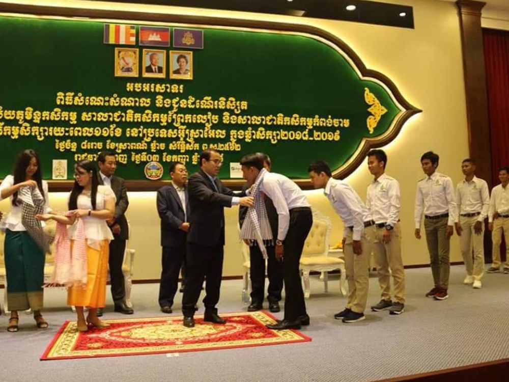 ឯកឧត្តមរដ្ឋមន្រ្តីវេង សាខុន បានអញ្ជើញជាអធិបតីភាពក្នុងពិធីសំណេះសំណាលជាមួយនិស្សិតកម្មសិក្សាជំនាន់ទី១១ ក្នុងនោះមាននិស្សិតមកពីសាកលវិទ្យាល័យភូមិន្ទកសិកម្ម