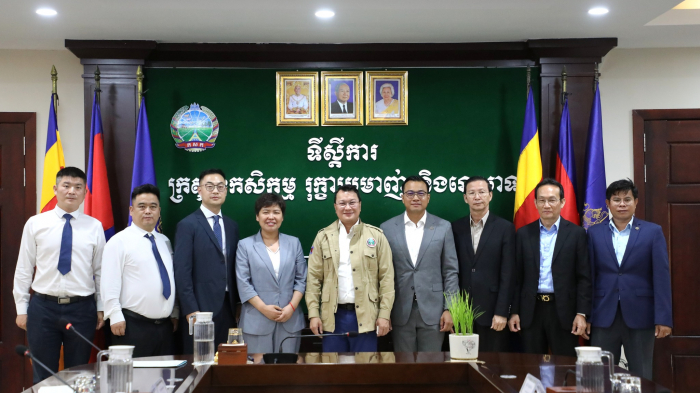 នៅរសៀលថ្ងៃទី០៩ ខែមករា​ ឆ្នាំ២០២៥​ ឯកឧត្តម ឌិត ទីណា រដ្ឋមន្ត្រីក្រសួងកសិកម្ម រុក្ខាប្រមាញ់ និងនេសាទ និងថ្នាក់ដឹកនាំ បានទទួលជួបសម្តែងការគួរសម និងពិភាក្សាការងារជាមួយក្រុមហ៊ុន​ Zhengzhou Chen’s Sun Fruits and Vegetables International Trade Co.,Ltd នៅទីស្តីការក្រសួងកសិកម្ម រុក្ខាប្រមាញ់ និងនេសាទ។