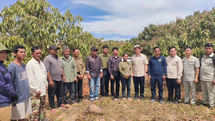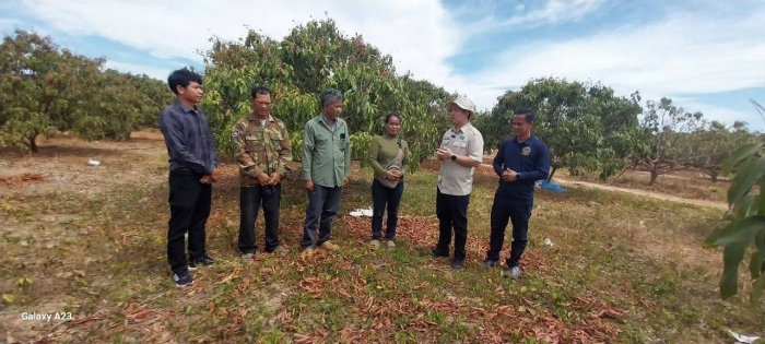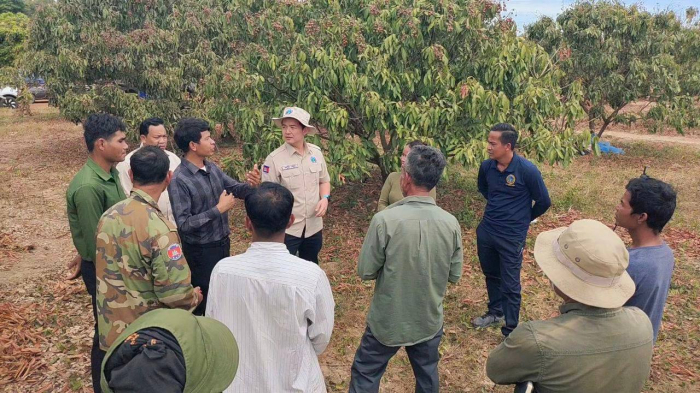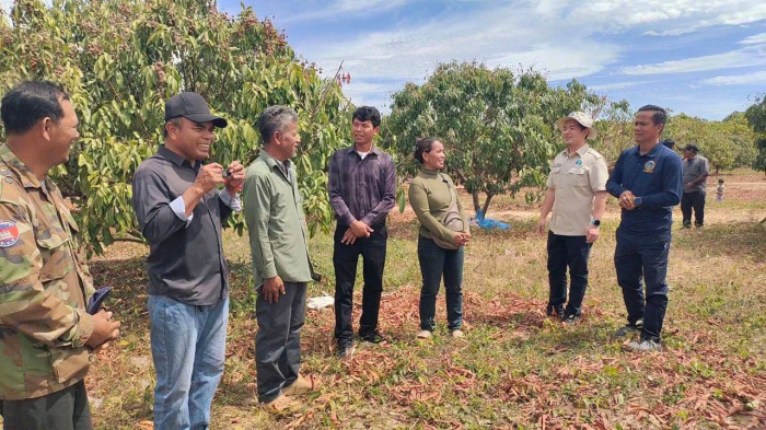 នាព្រឹកថ្ងៃអង្គារ ទី២៥ ខែកុម្ភៈ ឆ្នាំ២០២៥ ឯកឧត្តម សៀក ឡេង អនុរដ្ឋលេខាធិការក្រសួងកសិកម្ម រុក្ខាប្រមាញ់ និងនេសាទ បានដឹកនាំមន្ទីរកសិកម្មខេត្ត តំណាងមន្ទីរពាណិជ្ជកម្មខេត្ត អាជ្ញាធរមូលដ្ឋាន និងក្រុមហ៊ុនប្រមូលទិញនិងកែច្នៃមៀនតាង៉ែន ចុះពិនិត្យចម្ការផ្លែមៀនតាង៉ែនរបស់អ្នកស្រី វណ្ណ គន្ធា នៅសង្កាត់អូរស្មាច់ ស្រុកសំរោង ខេត្តឧត្តរមានជ័យ។