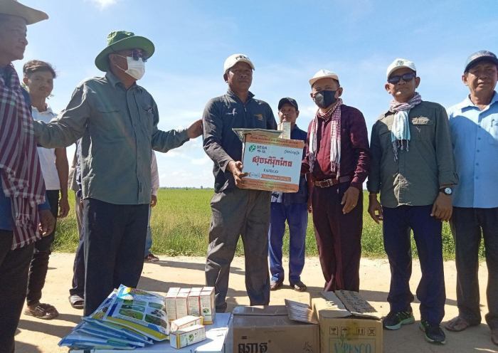 នៅថ្ងៃទី០៦ ខែកក្កដា ឆ្នាំ២០២៤ ឯកឧត្តម ហាស់ សារ៉េត រដ្ឋលេខាធិការក្រសួងកសិកម្ម រុក្ខាប្រមាញ់ និងនេសាទ និងក្រុមការងារ​ជំនាញ បានអញ្ជើញចុះពិនិត្យស្ថានភាពជាក់ស្តែង និងវាយតម្លៃផល​ប៉ះពាល់​ដំណាំស្រូវ ដែលទទួលរងការបំផ្លាញដោយសត្វ «រុយស» និង​ចាត់​វិធានការបាញ់ថ្នាំអន្តរាគមន៍ជូនកសិករ នៅភូមិកំពង់ស្វាយកើត ឃុំកំពង់ត្របែក ស្រុកកំពង់ត្របែក ខេត្តព្រៃវែង។