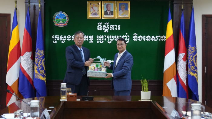 នៅព្រឹកថ្ងៃទី២៣ ខែកញ្ញា ឆ្នាំ២០២៤ ឯកឧត្តម ឌិត ទីណា រដ្ឋមន្ត្រីក្រសួងកសិកម្ម រុក្ខាប្រមាញ់ និងនេសាទ និងថ្នាក់ដឹកនាំ បានទទួលជួបសម្តែងការគួរសម និងពិភាក្សាការងារជាមួយគណៈប្រតិភូ Eco-Friendly Livestock Policy Division នៅទីស្តីការក្រសួងកសិកម្ម រុក្ខាប្រមាញ់ និងនេសាទ។