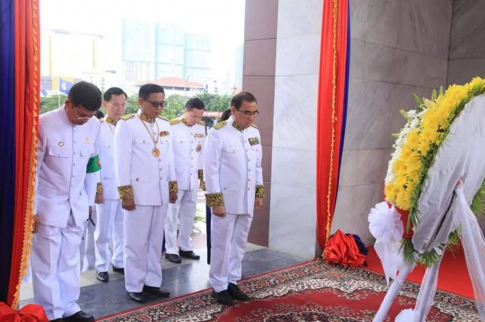 នារសៀលថ្ងៃសុក្រ ទី៨ ខែវិច្ឆិកា ឆ្នាំ២០១៩ ឯកឧត្តម វេង សាខុន រដ្ឋមន្រ្តីក្រសួងកសិកម្ម រុក្ខាប្រមាញ់ និងនេសាទ និងថ្នាក់ដឹកនាំក្រសួង ចូលរួមដាក់កម្រងផ្កា គោរពវិញ្ញាណក្ខន្ធនៅវិមានឯករាជ្យនិងថ្វាយកម្រងផ្កាគោរពព្រះវិញ្ញាណក្ខន្ធព្រះករុណា ព្រះបរមរតនកោដ្ឋ នៅមណ្ឌបសួនច្បារខាងកើតវិមានឯករាជ្យ ក្នុងពិធីខួបអនុស្សាវរីយ៍លើកទី៦៦ នៃទិវាបុណ្យឯករាជ្យជាតិ ៩ វិច្ឆិកា និងទិវាកំណើតនៃកងយោធពលខេមរភូមិន្ទ ឆ្នាំ២០១៩។