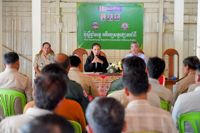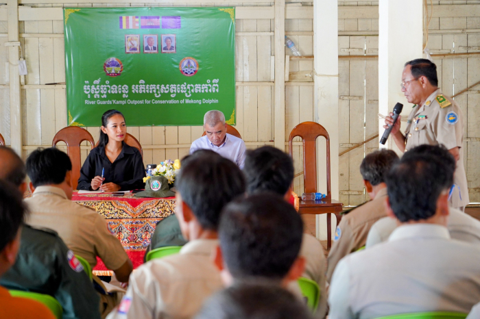 លោកជំទាវអនុរដ្ឋលេខាធិការ អ៊ឹម រចនា អញ្ជើញជួបសំណេះសំណាលជាមួយមន្ត្រីឆ្មាំទន្លេអភិរក្សសត្វផ្សោតកាំពី ខេត្តក្រចេះ