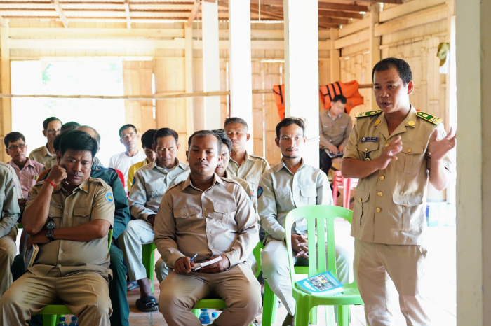 នៅថ្ងៃទី២៦ ខែកញ្ញា ឆ្នាំ២០២៤ លោកជំទាវ អ៊ឹម រចនា អនុរដ្ឋលេខាធិការក្រសួងកសិកម្ម រុក្ខាប្រមាញ់ និងនេសាទ អមដំណើរដោយលោក ផៃ សុម៉ានី អនុប្រធាននាយកដ្ឋានអភិរក្សជលផល នៃរដ្ឋបាលជលផល បានអញ្ជើញជួបសំណេះសំណាលជាមួយមន្ត្រីឆ្មាំទន្លេអភិរក្សសត្វផ្សោតកាំពី នៅប៉ុស្តិ៍ឆ្មាំទន្លេ ក្នុងភូមិសាស្ត្រស្រុកចិត្របុរី ខេត្តក្រចេះ។