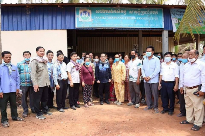 ចេញពីស្រុកបន្ទាយមាស ខេត្តកំពត ឯកឧត្តមរដ្ឋមន្ត្រី និងសហការីបានបន្តដំណើរមកកាន់ស្រុកត្រាំកក់ ខេត្តតាកែវ ដើម្បីពិនិត្យសកម្មភាពដាំបន្លែចម្រុះ និងចិញ្ចឹមគោរបស់លោកពូ អ៊ុន អឿន ដែលជាសមាជិកសហគមន៍កសិកម្មសាមគ្គីត្រពាំងចក ស្ថិតក្នុងភូមិត្រពាំងចក ឃុំត្រាំកក់ ខេត្តតាកែវ។ មិនខុសពីស្រុកបន្ទាយមាស ស្រុកត្រាំកក់ ជាស្រុកមួយឈានមុខគេនៅទូទាំងខេត្តលើការងារផលិតកម្មបន្លែ និងការចិញ្ចឹមទាយកស៊ុត។ តាមការឱ្យដឹងពីលោកពូ អ៊ុន អឿន ថាបច្ចុប្បន្នបន្លែសុវត្ថិភាពគ្រប់ប្រភេទមានតម្លៃកើនឡើងយ៉ាងល្អប្រសើរ បន្ទាប់ពីរាជរដ្ឋាភិបាលបិទការនាំ ចូលពីខាងក្រៅ។ ព្រមជាមួយនឹងតម្លៃកើនឡើង កសិករ គ្រូបង្រៀន ខ្លះទៀតជាមន្រ្តី និងអាជ្ញាធរឃុំ ភូមិថានឹងងាកមកដាំដំណាំជាបណ្តើរៗឡើងវិញដើម្បីច្បាមយកឱកាសមាសនេះ ងាកមកបង្កើនផលិតភាពផលិតកម្មកសិកម្ម រួមចំណែកធានាដល់ការផ្គត់ផ្គង់ស្បៀងក្នុងស្រុក លើក កម្ពស់កម្រិតជីវភាពឱ្យកាន់តែល្អប្រសើរជាលំដាប់។ ហេតុផលនេះ ក្នុងនាមលោកពូជាសមាជិកសហគមន៍សាមគ្គីត្រពាំងចក ក៏ដូចជាសហគមន៍កសិកម្មទូទាំងប្រទេស តាមរយ:ឯកឧត្តមរដ្ឋមន្ត្រី លោកពូបានស្នើសុំឱ្យរាជរដ្ឋាពិបាលមេត្តាបន្តទប់ស្កាត់ ឬកាត់បន្ថយការនាំចូលផលិត ផលបន្លែពីប្រទេសជិតខាងសម្រាប់រយ:យូរអង្វែង តាមដែលអាចធ្វើទៅបាន។