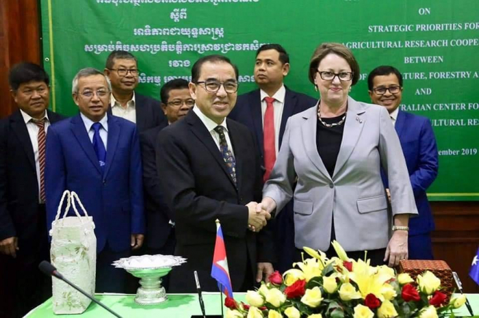 នៅទីស្តីការក្រសួងកសិកម្ម រុក្ខាប្រមាញ់ និងនេសាទ នាព្រឹកអង្គារ ៩កើត ខែកត្តិក ឆ្នាំកុរ ឯកស័ក ព.ស. ២៥៦៣ ត្រូវនឹងថ្ងៃទី៥ ខែវិច្ឆិកា ឆ្នាំ២០១៩ បានរៀបចំពិធីចុះហត្ថលេខាលើលិខិតបញ្ជាក់បំណងស្តីពី "អាទិភាពជាយុទ្ធសាស្រ្តស្រាប់កិច្ចសហប្រតិបត្តិការស្រាវជ្រាវកសិកម្ម" រវាងក្រសួងកសិកម្ម រុក្ខាប្រមាញ់ និងនេសាទ ជាមួយមជ្ឈមណ្ឌលអូស្រ្តាលី សម្រាប់ការស្រាវជ្រាវកសិកម្មអន្តរជាតិ (Australian Center for International Agricultural Research, ACIAR)