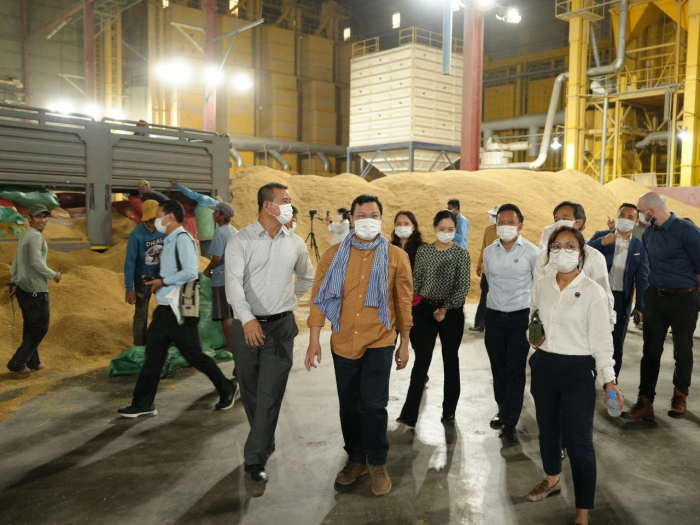 ឯកឧត្តម ឌិត ទីណា រដ្ឋមន្ត្រីក្រសួងកសិកម្ម រុក្ខាប្រមាញ់ និងនេសាទ ឯកឧត្តម ហែម វណ្ណឌី រដ្ឋមន្ត្រីក្រសួង ឧស្សាហកម្ម វិទ្យាសាស្រ្ត បច្ចេកវិទ្យា និងនវានុវត្តន៍ និងលោកជំទាវ ចម និម្មល រដ្ឋមន្ត្រីក្រសួងពាណិជ្ជកម្ម អញ្ជើញចូលរួមជាអធិបតីភាពក្នុងដំណើរទស្សនិច្ចចុះពិនិត្យរោងម៉ាស៊ីនកិនស្រូវ Primalis ដែលជាសមាជិកសហព័ន្ធស្រូវអង្ករកម្ពុជា