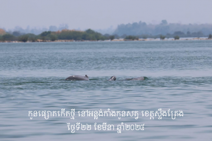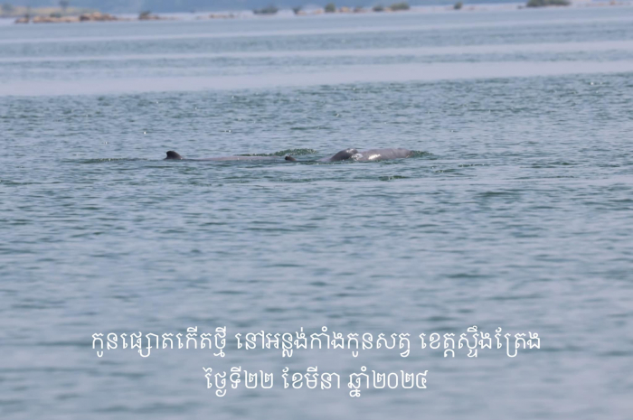 នៅខេត្តស្ទឹងត្រែង ផ្សោតទើបនឹងកើតថ្មីមួយក្បាល ត្រូវប្រទះឃើញ នាវេលាម៉ោង១៣:៤៥នាទី នាថ្ងៃទី២២ ខែមីនា ឆ្នាំ២០២៤ នៅអន្លង់កាំងកូនសត្វ ភូមិកោះព្រះ ឃុំកោះព្រះ ស្រុកសៀមបូក ខេត្តស្ទឹងត្រែង។ កូនផ្សោតនេះស្ថិតនៅក្នុងហ្វូងសត្វផ្សោតចំនួ ន៦ក្បាលផ្សេងទៀត។