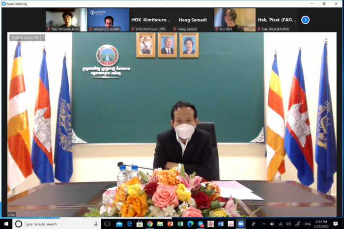 នៅថ្ងៃទី១៣​ ខែមករា​ ឆ្នាំ២០២២​ វេលាម៉ោង​ ៣:៣០នាទីរសៀល​ ឯកឧត្តម​ ងិន​ ឆាយ​ ប្រតិភូរាជរដ្ឋាភិបាលកម្ពុជាទទួលបន្ទុកជាអគ្គនាយកនៃអគ្គនាយកដ្ឋានកសិកម្ម​ រួមជាមួយសហការី​ បានចូលរួមប្រជុំពិនិត្យវឌ្ឍភាពនៃការរៀបចំគម្រោង​ Public-Social-Private Partnership for Ecologically- sound Agriculture and Resilient Livelihood in Northern Tonle Sap Basin (PEARL) តាមរយ:​ Zoom Meeting ជាមួយក្រុមកាងារ FAO និងអង្គភាពពាក់ព័ន្ធក្រោមឱវាទក្រសួងកសិកម្ម​ រុក្ខាប្រមាញ់​ និងនេសាទ។