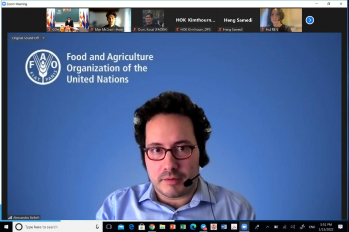 កិច្ចប្រជុំពិនិត្យវឌ្ឍភាពនៃការរៀបចំគម្រោង​ Public-Social-Private Partnership for Ecologically- sound Agriculture and Resilient Livelihood in Northern Tonle Sap Basin (PEARL) តាមរយ:​ Zoom Meeting ជាមួយក្រុមកាងារ FAO