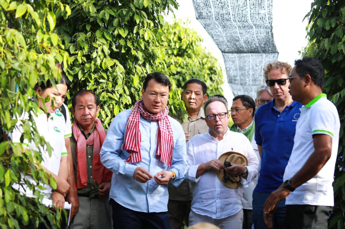 សេចក្តីប្រកាសព័ត៌មាន អំពីដំណើទស្សនកិច្ចរួមគ្នារបស់ ឯកឧត្តមរដ្ឋមន្ត្រីក្រសួងកសិកម្ម រុក្ខាប្រមាញ់ និងនេសាទ និងក្រុមអឺរ៉ុប ទៅកាន់ចម្ការស្វាយចន្ទី និងម្រេច