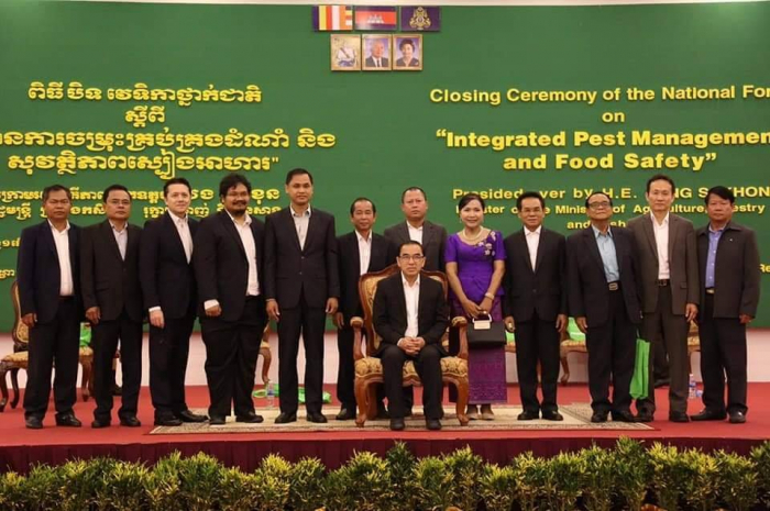 ការវិវឌ្ឍន៍រីកចម្រើនក្នុងវិស័យកសិកម្ម បានលើកស្ទួយប្រទេសកម្ពុជាឱ្យក្លាយជាប្រទេសមួយក្នុងចំណោមប្រទេសនាំចេញអង្ករធំៗ១០ និងជាប្រទេសទី៥ ដែលកំពុងនាំចេញអង្ករសរីរាង្គទៅកាន់ទីផ្សារអ៊ឺរ៉ុប ហើយក្នុងឆ្នាំ២០១៨កន្លងទៅនេះ កម្ពុជាផលិតស្រូវបានចំនួនជាង ១០,៨លានតោន សល់ស្រូវចំនួនជាង ៥,៨លានតោនសម្រាប់នាំចេញ បាននាំចេញអង្ករជាផ្លូវការចំនួនជាង ៦៣៥ពាន់តោន និងបាននាំចេញផលិតផលកសិកម្មសរុប ៤,២៣លានតោនផងដែរ។ ទាំងអស់នេះបញ្ជាក់យ៉ាងច្បាស់ថា ប្រជាកសិករកម្ពុជាកំពុងកែប្រែទម្លាប់ ពីការផលិតសម្រាប់បម្រើសេចក្ដីត្រូវការរបស់ខ្លួន មកជាការផលិតតាមលក្ខណៈប្រពលវប្បកម្ម ឈានដល់ការផលិតសម្រាប់នាំចេញ និងការប្រកួតប្រជែងទីផ្សារនៅអន្តរជាតិព្រោះមានតម្រូវការទីផ្សារខ្ពស់។ ដូច្នេះ ការរៀបចំវេទិកាថ្នាក់ជាតិស្តីពី វិធានការចម្រុះគ្រប់គ្រងដំណាំ និងសុវត្ថិភាពស្បៀងអាហារនាពេលនេះ គឺសមស្របនឹងនិន្នាការពិភពលោក ដែលបានងាកទៅរកការប្រើប្រាស់ផលិតផលកសិកម្មមានគុណភាព និងមិនប៉ះពាល់ដល់សុខភាព ដូចជាកសិផលសរីរាង្គ (Organic) ការអនុវត្តកសិកម្មល្អ (GAP) តាមស្តង់ដារ និងកសិផលក្នុងប្រព័ន្ធធានាសុវត្ថិ-ភាពដោយមានការចូលរួម (PGS) ដើម្បីទទួលបាននូវឧត្តមភាពប្រកួតប្រជែងនៅលើទីផ្សារអន្តរជាតិ។ ពាក់ព័ន្ធនឹងប្រធានបទនេះ ឯកឧត្តមរដ្ឋមន្ត្រីបានបង្ថែមថា ដោយទទួលបានកិច្ចគាំទ្រយ៉ាងល្អប្រសើរពីដៃគូអភិវឌ្ឍន៍ ក្រសួងកសិកម្ម រុក្ខាប្រមាញ់ និងនេសាទ បានដាក់ចេញនូវគោលការណ៍ និងរូបសញ្ញាជាតិនៃការអនុវត្តកសិកម្មល្អកម្ពុជា (CamGAP) ជាស្តង់ដារជាតិ ដែលជាវិធាននៃការអនុវត្ត និងអាចបញ្ជាក់បានទាំងគុណភាព និងសុវត្ថិភាពនៃផលិតផលកសិកម្ម ជាពិសេសលើដំណាំបន្លែ និងផ្លែឈើ។ ទន្ទឹមនឹងនេះ ដើម្បីលើកកម្ពស់វិធានការចម្រុះគ្រប់គ្រងដំណាំ និងសុវត្ថិភាពស្បៀងអាហារ ឯកឧត្តមរដ្ឋមន្ត្រីបានណែនាំដល់អគ្គនាយកដ្ឋានកសិកម្ម និងអង្គភាពពាក់ព័ន្ធ ត្រូវបន្តកិច្ចសហប្រតិបត្តិការល្អជាមួយអង្គការជាតិ អន្តរជាតិ និងដៃគូអភិវឌ្ឍន៍នានា ក្នុងការលើកស្ទួយវិស័យកសិកម្មប្រកបដោយនិរន្តរភាព និងមានសុវត្ថិភាពស្បៀងអាហារដោយផ្តោតជាសំខាន់ទៅលើ៖