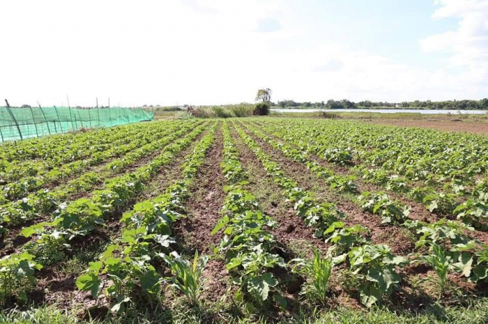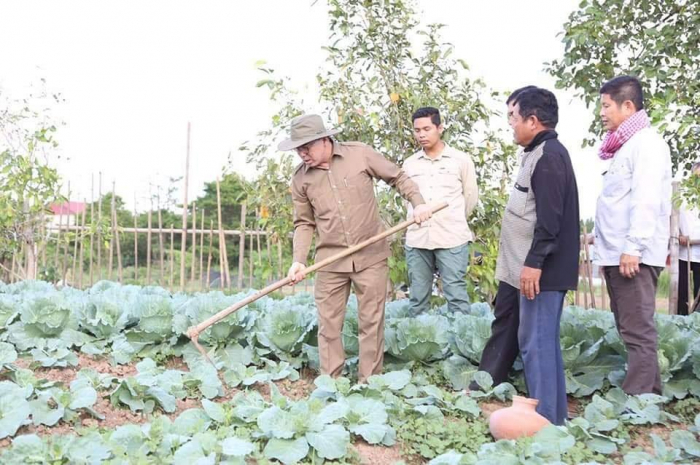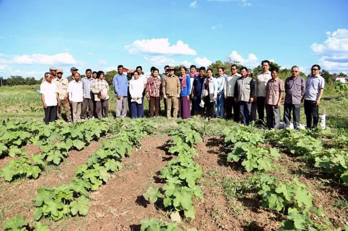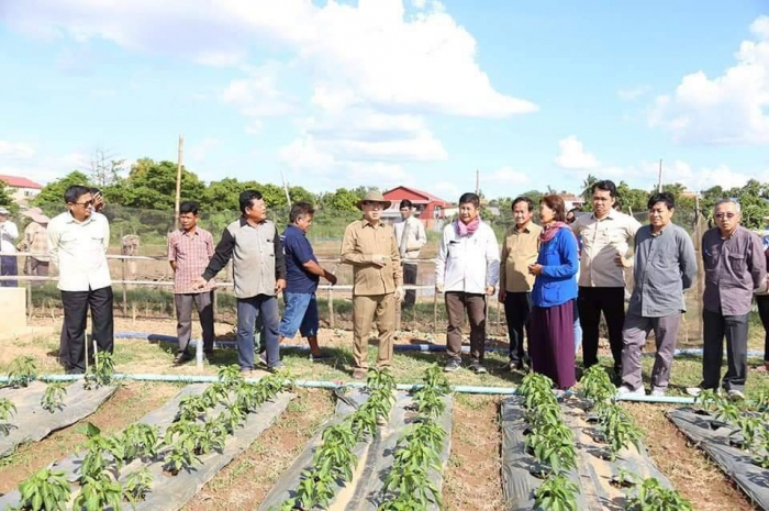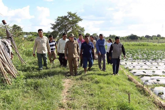 ឯកឧត្តមរដ្ឋមន្រ្តី វេង សាខុន អមដំណើរដោយសហការី បានអញ្ជើញចុះមកពិនិត្យដំណាំបន្លែរបស់កសិករនៅសង្កាត់សំបូរមាស ក្រុងកំពង់ចាម