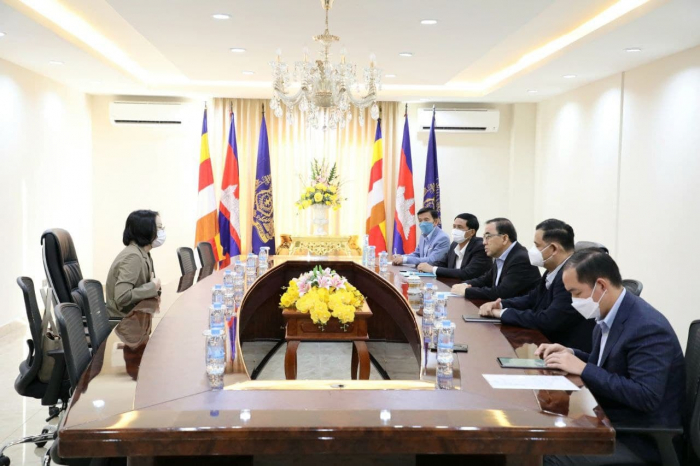 ឯកឧត្តមរដ្ឋមន្ត្រី វេង សាខុន បានអនុញ្ញាតឲ្យលោកស្រី ជេស៊ីកា តំណាងក្រុមហ៊ុន ជីន យូ តាំង (ខេមបូឌា) ហ្វីសឺរី ឯ.ក ចូលជួបពិភាក្សាអំពីវឌ្ឍនភាព និងស្នើសុំការណែនាំបន្ថែមពាក់ព័ន្ធនឹងផែនការវិនិយោគវារីវប្បកម្មសមុទ្រក្នុងបែនៅក្នុងព្រះរាជាណាចក្រកម្ពុជា