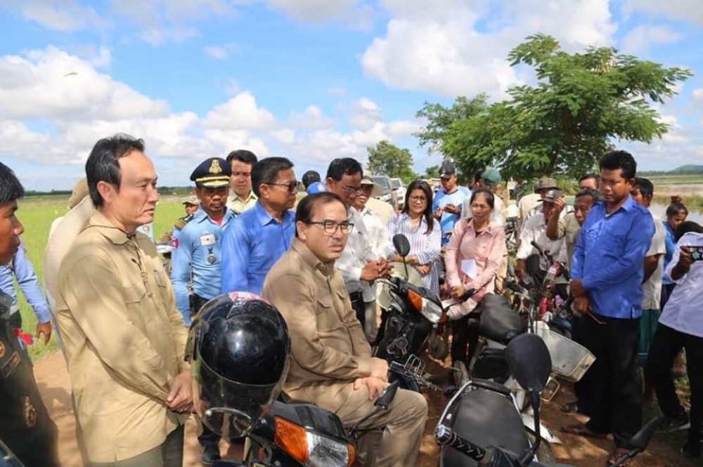 ចេញពីចំការបន្លែនៅក្រុងសេរី សោភ័ណ្ឌ បានបន្តដំណើរចុះពិនិត្យស្ថានភាពការលិចលង់ដំណាំស្រូវដោយទឹកជំនន់កន្លងមក នៅភូមិក្រមុល ឃុំរហាត់ទឹក ស្រុកមង្គលបុរី