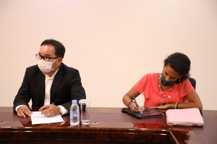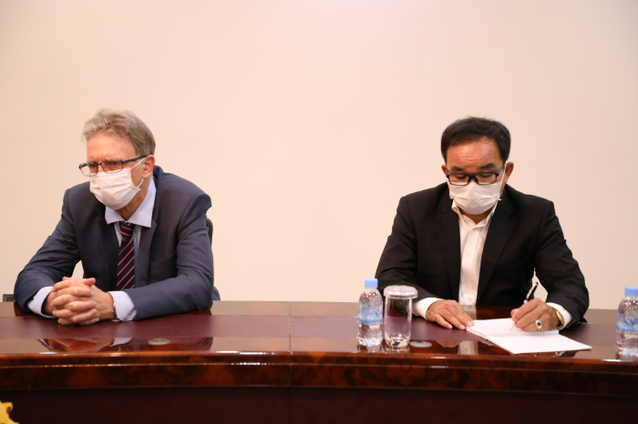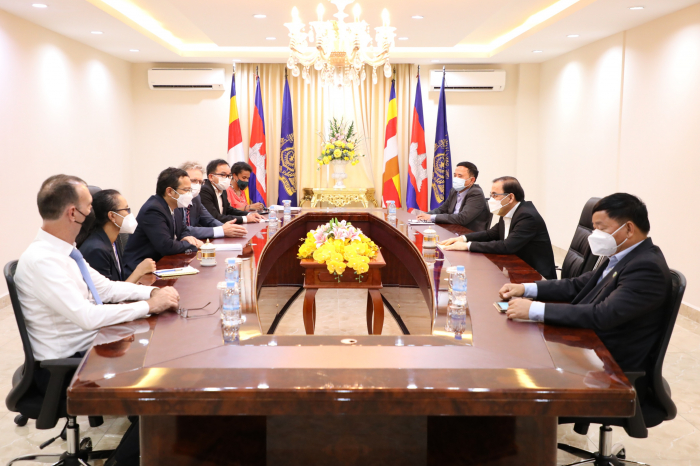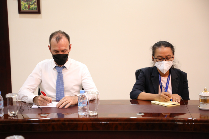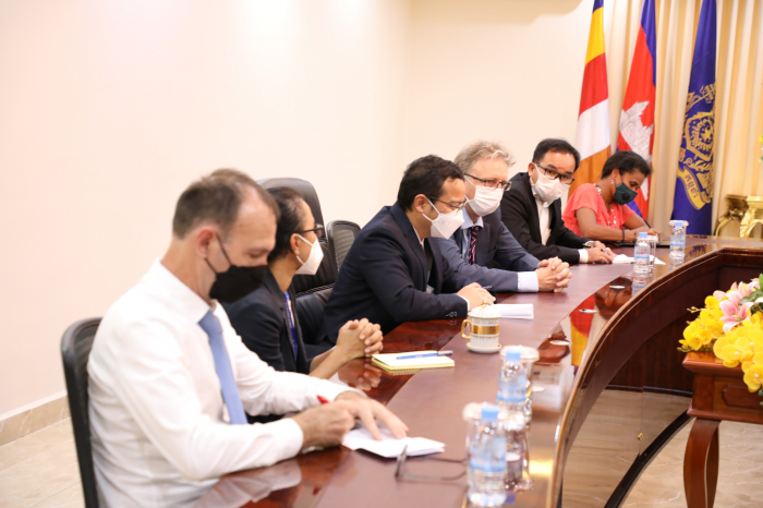 នៅទីស្តីការក្រសួងកសិកម្ម រុក្ខាប្រមាញ់ និងនេសាទ នៅវេលាម៉ោង ១៥:០០ ថ្ងៃព្រហស្បតិ៍ ១រោច ខែមាឃ ឆ្នាំឆ្លូវ ត្រីស័ក ព.ស. ២៥៦៥ ត្រូវនឹងថ្ងៃទី១៧ ខែកុម្ភ: ឆ្នាំ២០២២ ឯកឧត្តមរដ្ឋមន្ត្រី វេង សាខុន បានអនុញ្ញាតឲ្យក្រុមការងារមកពីមូលនិធិអន្តរជាតិសម្រាប់ការអភិវឌ្ឍន៍កសិកម្ម (IFAD) ដឹកនាំដោយលោក ម៉េង សាក់ពូសិទ្ធ និងរួមជាមួយនឹងក្រុមការងាររៀបចំគម្រោងកម្មវិធី និងលោកស្រី តំណាងឲ្យសហភាពអឺរ៉ុបប្រចាំនៅកម្ពុជា ហើយនិងធនាគារវិនិយោគសហភាពអ៊ឺរ៉ុប (EIB) ចូលជួបសម្តែងការគួរសម និងពិភាក្សាការងារ។ ជាបឋម លោក តំណាងអង្គការ IFAD បានថ្លែងអំណរគុណចំពោះពេលវេលាដ៏មានតម្លៃរបស់ ឯកឧត្តមរដ្ឋមន្ត្រី និងជាពិសេសឯកឧត្តមរដ្ឋមន្រ្តី និងសហការីបានផ្តល់កិច្ចសហការយ៉ាងល្អប្រសើរក្នុងការជំរុញ គាំទ្រ និងលើកទឹកចិត្តគ្រប់បែបយ៉ាងធ្វើឲ្យកម្មវិធី ASPIRE សម្រេចទទួលបានជោគជ័យគួរជាទីមោទន។ ជាក់ស្តែង តាមការសិក្សា និងវាយតម្លៃអំពីប្រសិទ្ធភាពសេដ្ឋកិច្ច សម្រាប់ការវិនិយោគរបស់កម្មវិធី ASPIRE ១ដុល្លារ អ្នកទទួលផល (កសិករទូទាំង ២៣ខេត្ត) បានទទួលចំណូលចំនួន ៦៥ដុល្លារ តារយ:ការលក់ផលិតកម្មកសិកម្ម (បន្លែសុវត្ថិភាព) សត្វបក្សី (មាន់ពង និងសាច់) និងត្រី ដោយបានអនុវត្តបច្ចេកទេសថ្មី សមស្រប ធន់នឹងការប្រែប្រួលអាការធាតុ ដែលទទួលបានពីកម្មវិធី ASPIRE ដោយធ្វើការចងក្រងបណ្តុំផលិត ការអនុវត្តផលិតកម្មកសិកម្មតាមកិច្ចសន្យា ការអនុវត្ត CamGAP ការប្រើប្រាស់ផ្ទះសំណាញ់ ប្រព័ន្ធដំណក់ទឹក ការប្រើថ្នាំ ជីកសិកម្ម និងធាតុចូលកសិកម្មផ្សេងៗទៀតទៅតាមបច្ចេកទេសត្រឹមត្រូវ និងការរៀបចំទីផ្សារលក់ផលិតផលនៅតាមសហគមន៍។ ឆ្លៀតយកឱកាសនេះ លោកតំណាង IFAD (ប្រចាំកម្ពុជា) បានជម្រាបជូនឯកឧត្តមរដ្ឋមន្រ្តីជ្រាបថាបេសកកម្មរបស់ក្រុមការងារលើកនេះមានគោលបំណង ៣ សំខាន់ ៖ ១- កម្មវិធីកាលានុវត្តភាពយុទ្ធសាស្ត្រប្រចាំប្រទេស (កម្មវិធីការងារនៅកម្ពុជា) សម្រាប់ឆ្នាំ២០២២-២០២៧ (Country Strategy Oppotunities Programme, COSOP) ២- កម្មវិធី “ផ្តល់សេវាកម្មកសិកម្ម ដើម្បីកំណើនសេដ្ឋកិច្ចនៅទីជនបទប្រកបដោយ បរិយាប័ន្ន និងដើម្បីបង្កើនពាណិជ្ជកម្មកសិកម្ម (Agriculture Services Programme for an Inclusive Rural Economy and Agricultural Trade, ASPIRE-AT)។ ៣- គម្រោងស្តីពីការកសាងសមត្ថភាពបន្សំ តាមរយៈការពង្រីកបច្ចេកវិទ្យាថាមពលកកើតឡើងវិញ នៅតំបន់ជនបទនៃប្រទេសកម្ពុជា ជំហានទី២ (Building Adaptive Capacity through the Scaling-up of Renewable Energy Technologies in Rural Cambodia, SRET 2)។ លោកបានបញ្ជាក់បន្ថែមថា COSOP នឹងត្រូវធ្វើឲ្យស្របគ្នាជាមួយក្របខ័ណ្ឌគោលនយោបាយថ្មី និងផ្តោតឲ្យកាន់តែស៊ីជម្រៅលើការអភិវឌ្ឍវិស័យកសិកម្មឲ្យស្រប គ្នានឹងតម្រូវការក្នុងការធ្វើកសិពាណិជ្ជកម្ម។ មិនតែប៉ុណ្ណោះ កម្មវិធី ASPIRE 2 ដែលនឹងគ្រោងអនុវត្តបន្តចាប់ពីឆ្នាំ២០២៣-២០២៧ ដោយផ្តោតជាសំខាន់ល