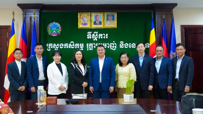 នៅព្រឹកថ្ងៃទី០៧ ខែតុលា ឆ្នាំ២០២៤ ឯកឧត្តម ឌិត ទីណា រដ្ឋមន្ត្រីក្រសួងកសិកម្ម រុក្ខាប្រមាញ់ និងនេសាទ បានទទួលជួបសម្តែងការគួរសម និងពិភាក្សាការងារជាមួយគណៈប្រតិភូក្រុមហ៊ុន 102 Farm Group នៅទីស្តីការក្រសួងកសិកម្ម រុក្ខាប្រមាញ់ និងនេសាទ។