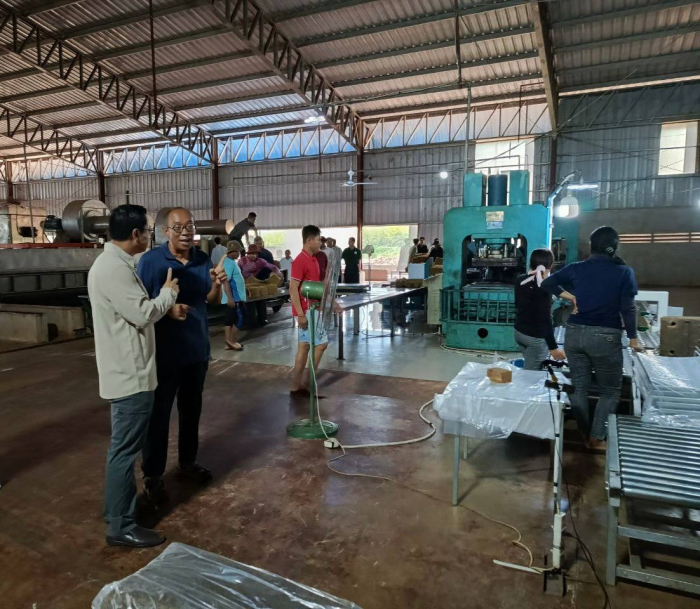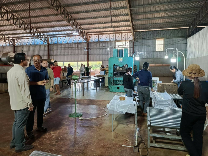 បន្ទាប់មក គណ:ប្រតិភូបានចុះពិនិត្យរោងសិប្បកម្មកែច្នៃជ័រកៅស៊ូឈ្មោះ Kamrubber ដែលបង្កើតឡើយក្នុងខែកញ្ញា ឆ្នាំ២០២៣ ស្ថិតនៅឃុំទមូង ស្រុកមេមត់។ រោងចក្រនេះបានប្រមូលទិញជ័រចានពីកសិករកៅស៊ូគ្រួសារមកកែច្នៃជាប្រភេទ CSR 10 ដោយមានសមត្ថភាពផលិតពី ២ - ២,៥តោន /ម៉ោង។ បច្ចុប្បន្ន រោងចក្រនេះអាចផលិតជ័រប្រភេទលេខ១០ បានចំនួនប្រហែល ៦៥០តោន/ខែ សម្រាប់លក់ឲ្យសហគ្រាសផលិតសំបក់កង់យានយន្តទាំង៣ នៅកម្ពុជា៕