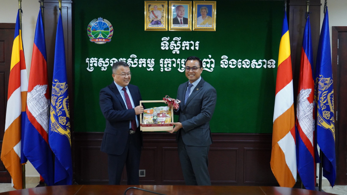 នៅព្រឹកថ្ងៃទី០៩ ខែកញ្ញា ឆ្នាំ២០២៤ ឯកឧត្តម ប្រាក់ ដាវីដ រដ្ឋលេខាធិការក្រសួងកសិកម្ម រុក្ខាប្រមាញ់ និងនេសាទ បានអញ្ជើញទទួលជួបពិភាក្សាការងារជាមួយគណៈប្រតិភូក្រុង Zhengzhou ខេត្តហឺណាន ប្រទេសចិន នៅទីស្តីការក្រសួងកសិកម្ម រុក្ខាប្រមាញ់ និងនេសាទ។