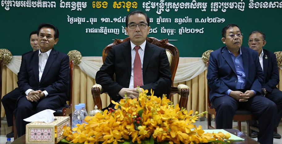 នៅទីស្តីការក្រសួងនារសៀលថ្ងៃច័ន្ទ ០៤រោច ខែផល្គុន នព្វស័ក ព.ស២៥៦១ ត្រូវនឹងថ្ងៃទី០៥ ខែមីនា គ.ស ២០១៨ ឯកឧត្តម វេង សាខុន រដ្ឋមន្រ្តីក្រសួងកសិកម្ម រុក្ខាប្រមាញ់ និងនេសាទ...