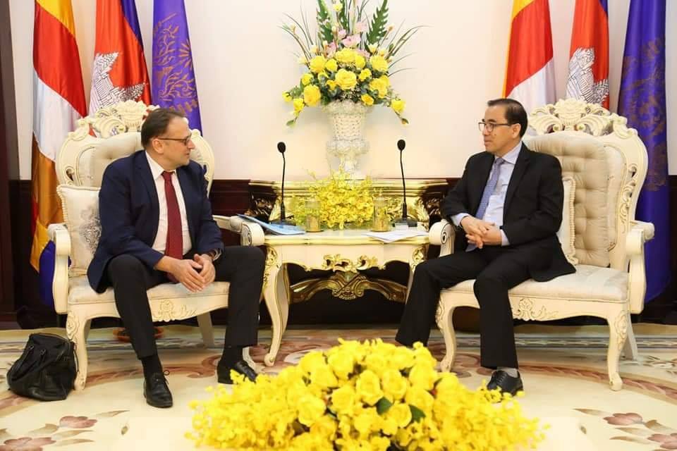 នារសៀលថ្ងៃដដែលបន្ទាប់ពីបានទទួលជួបភ្ញៀវអញ្ជើញមកពីក្រុមហ៊ុន Haikou Zhizhuang Biotechnology Co., Ltd និងក្រុមហ៊ុន Jiangsu Long An Agricultural Co., Ltd រួចមក ឯកឧត្តមរដ្ឋមន្រ្តីបានទទួលជួបឯកឧត្តម VLADIMIR GOSHIN ឯកអគ្គរដ្ឋទូតនៃសាធារណរដ្ឋបេឡារូសដើម្បីសម្តែងការគួរសម...