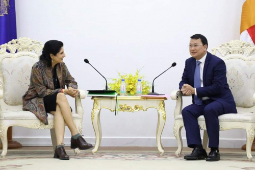 ឯកឧត្តម ឌិត ទីណា រដ្ឋមន្ដ្រីក្រសួងកសិកម្ម រុក្ខាប្រមាញ់ និងនេសាទ ទទួលជួបសម្ដែងការគួរសមជាមួយលោកជំទាវ Jyotsna Puri អនុប្រធានរងមូលនិធិអភិវឌ្ឍកសិកម្មអន្ដរជាតិ...